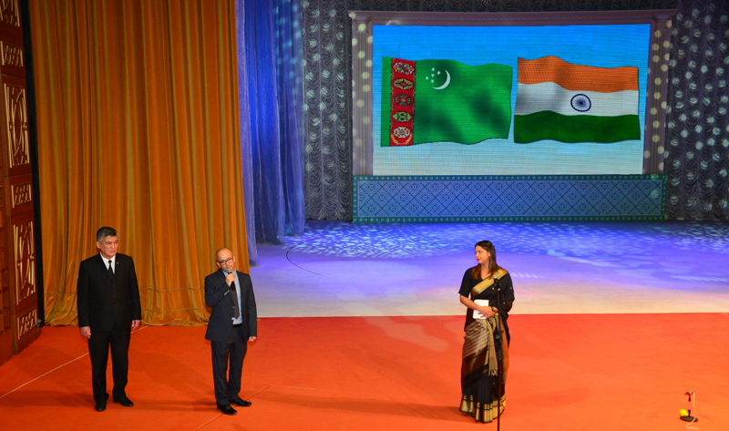 О большом интересе, проявляемом в нашей стране к индийской культуре, свидетельствует переполненный зал Дворца мукамов Государственного культурного центра Туркменистана. Здесь собрались руководители сферы культуры, представители аккредитованных в Туркменистане дипломатических миссий, средств массовой информации, творческая интеллигенция, молодёжь столицы, многочисленные поклонники искусства дружественного народа. В составе делегации гостей – руководитель и артисты танцевального коллектива классических танцев катхак.
