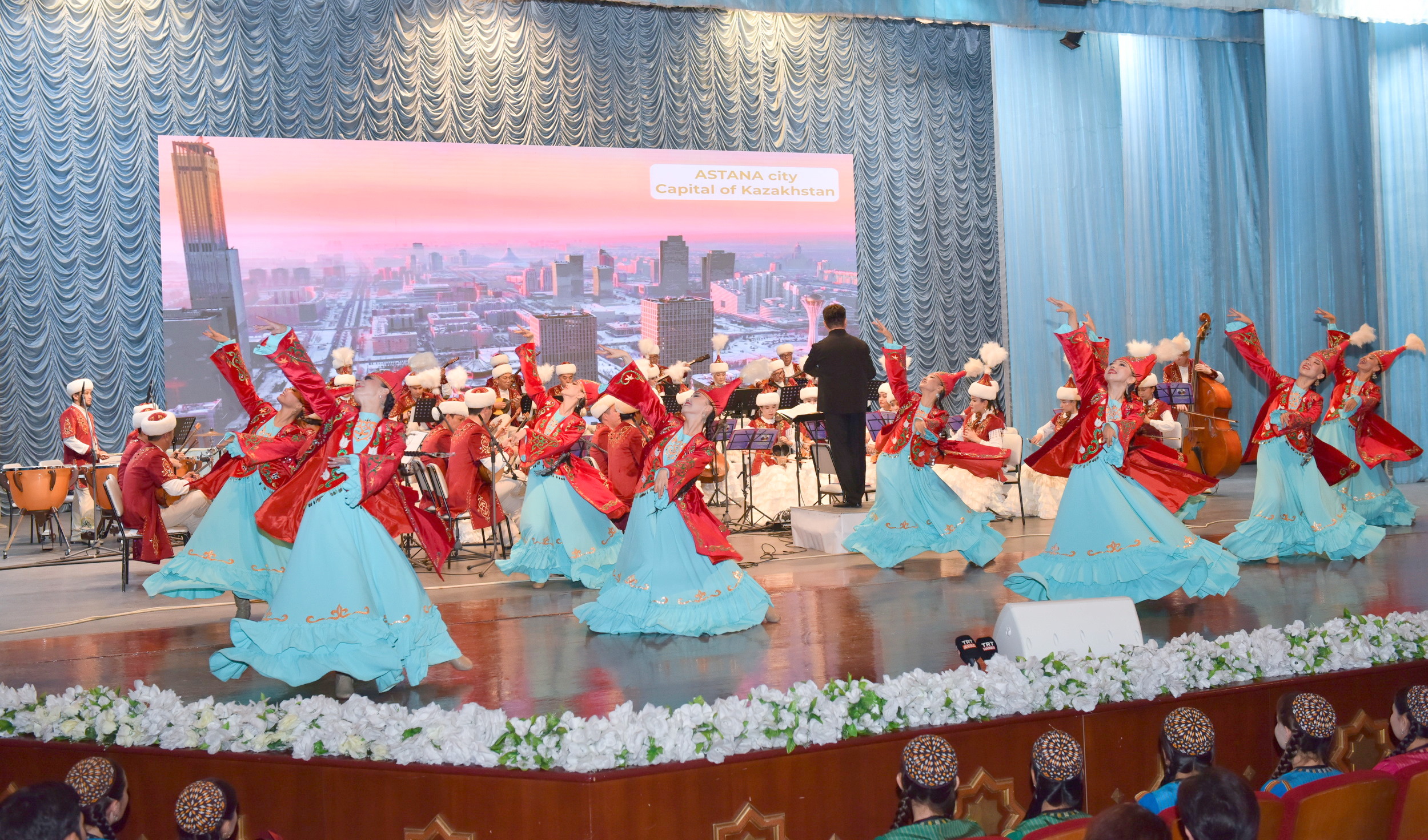 A concert took place on the stage of the Magtymguly National Music and Drama Theatre, bringing together a wide circle of representatives from Turkmenistan’s cultural and public spheres. Invited groups from Kazakhstan - the Dina Nurpeisova Academic Orchestra of Folk Instruments and the “Іnzhu-marzhan” Choreographic Ensemble of the Regional Philharmonic - performed before the guests.