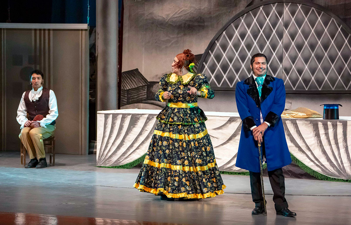 The production has many strengths. First and foremost — the ensemble cast. With their dances and songs, the chorus elevated the play to the level of a vaudeville. And when the romance “In the Moonlight the Snow Shimmers” was performed in the Turkmen language, the audience broke into enthusiastic applause. The market scene greatly adorned the production — cheerful, sunny, and musical.