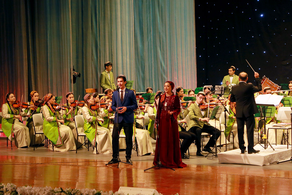 A brilliant performance was delivered by Ashyr Ashyrov, laureate of the “Türkmeniň Altyn asyry” award, who performed the third movement of the Concerto for Piano and Orchestra. The audience greeted the pianist’s virtuosity with prolonged applause.