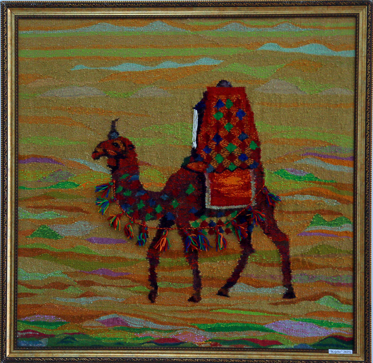 Among the carpet pieces, special attention was drawn to a carpet featuring in its center a stylized structure resembling a mosque, as well as a kejebe — a wedding carriage — or even a piece of jewelry. Each viewer is given the right to determine the purpose of this structure according to their own interpretation.