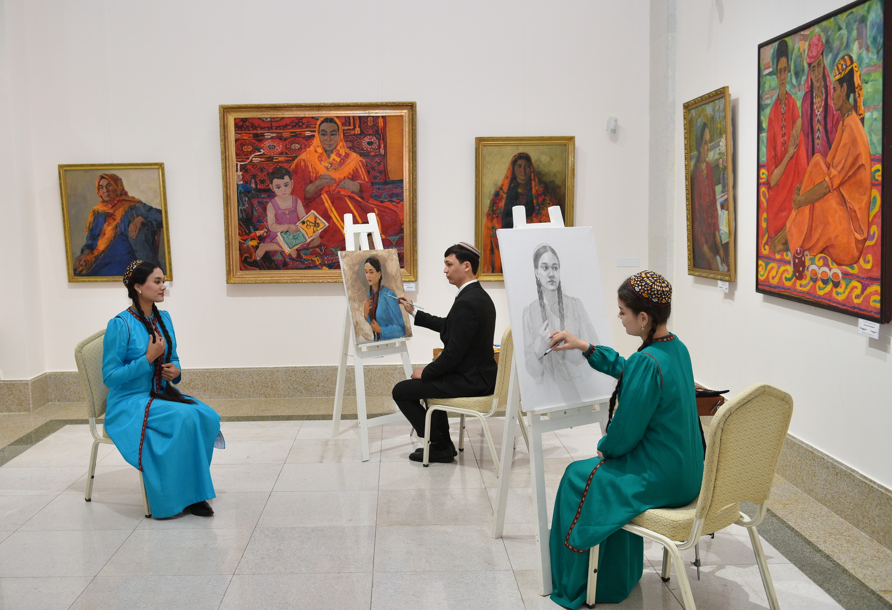 Charymyrat Yazmyradov presented an exhibition of paintings titled “Four Seasons.” Each of the four women depicted by the artist symbolizes one of the seasons of the year. Guncha Myradova exhibited four portraits of Turkmen beauties dressed in airy garments.