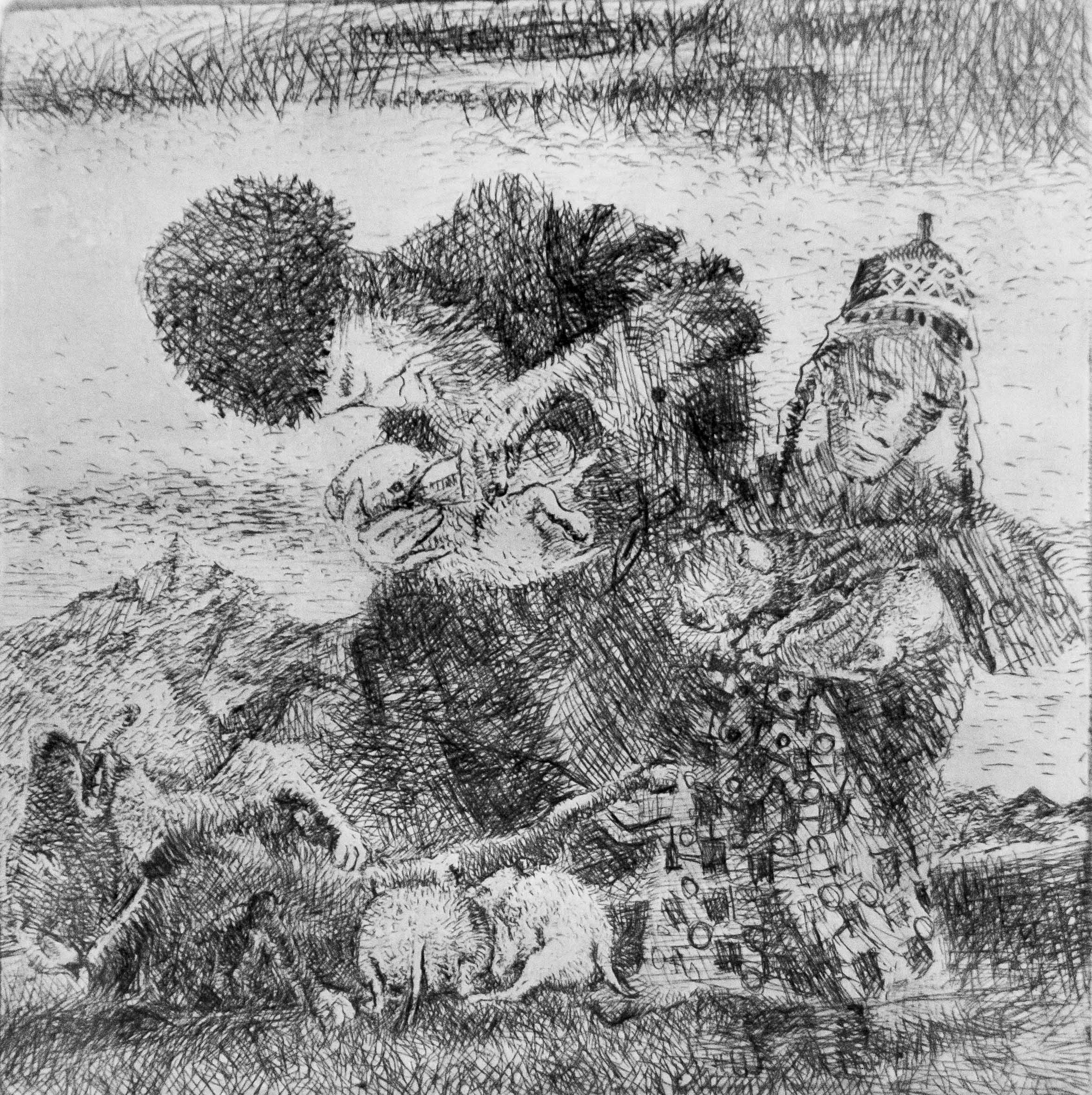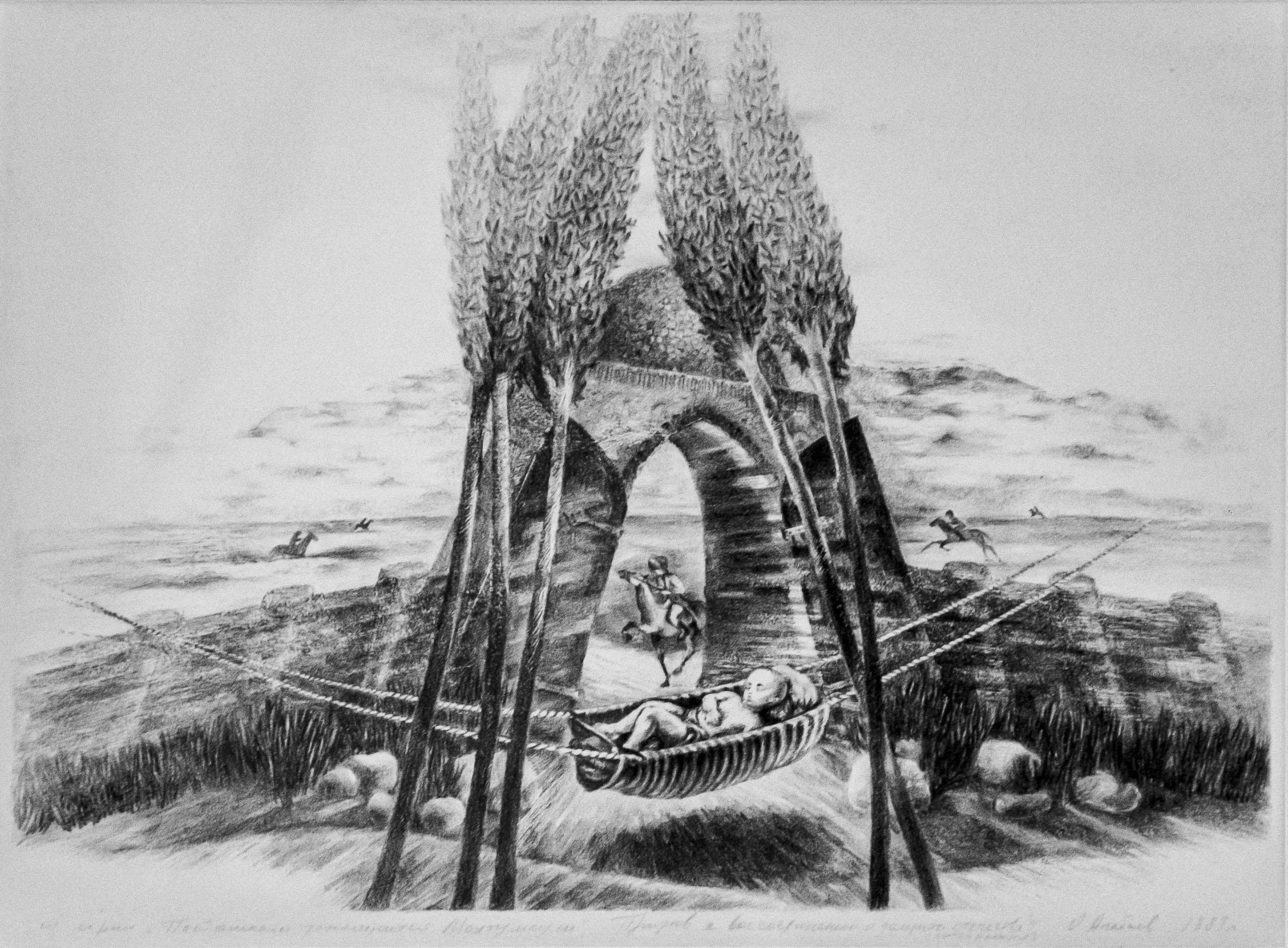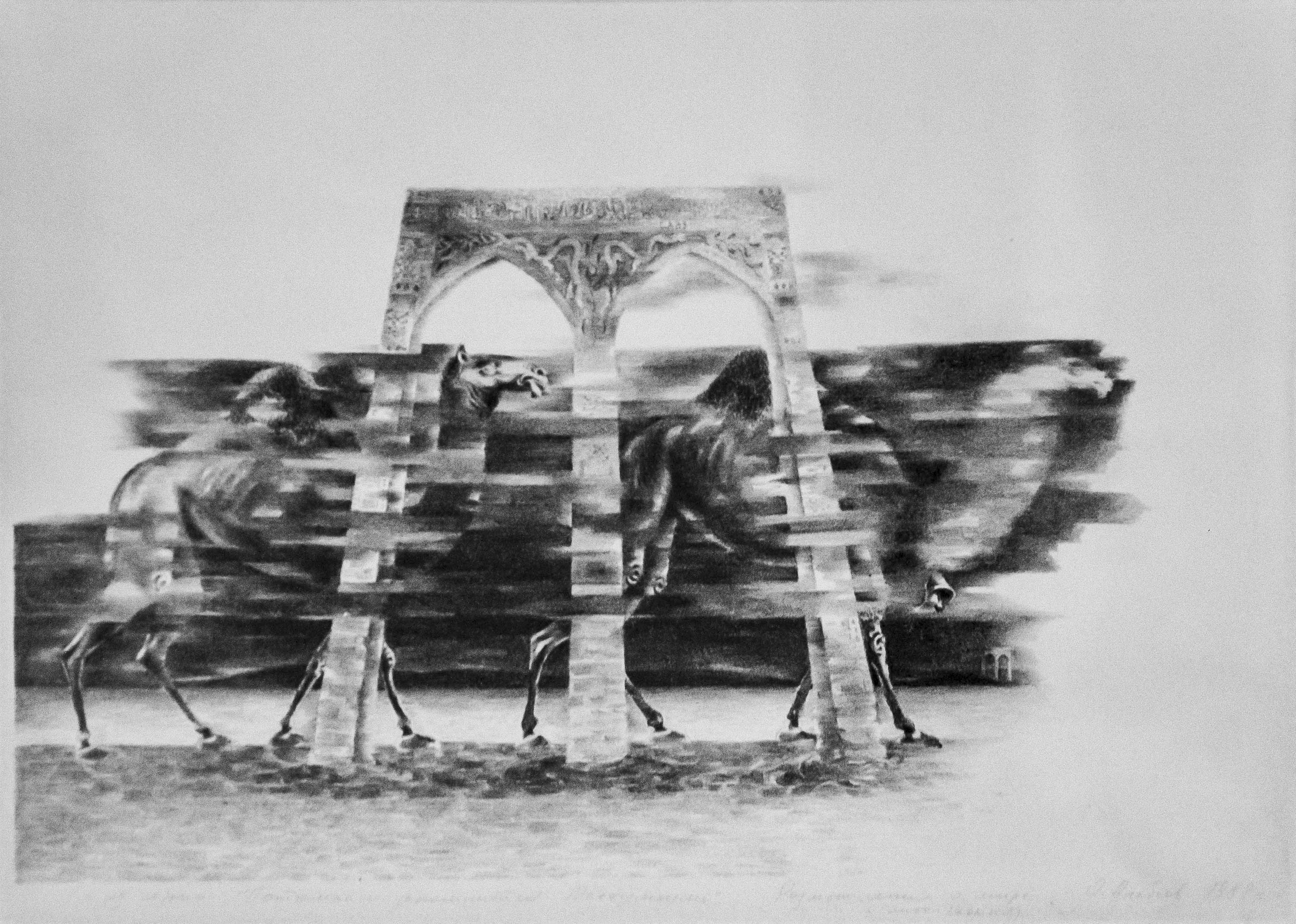 After graduating in 1976 from the Turkmen State Art School, Oraz Agabayev illustrated a children’s book about shepherds. This work so captivated the artist that it became a defining moment in his creative life. Thus, a distinctive graphic artist emerged in the country, whose works differ markedly from those of other painters. Feeling an irresistible attraction to this form of visual art, Agabayev continued his studies at the Faculty of Graphics of the Ukrainian Polygraphic Institute named after Ivan Fedorov. During his studies, he mastered all types of graphic art: drawing, pencil, charcoal, printmaking, xylography, and lithography. He mastered everything related to graphic art. Yet an artist is also a philosopher, with a personal worldview, a broad knowledge base, and the ability to vividly express ideas born in the soul.