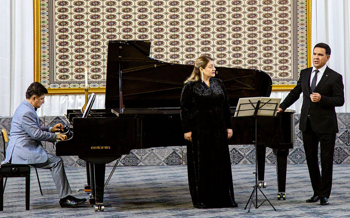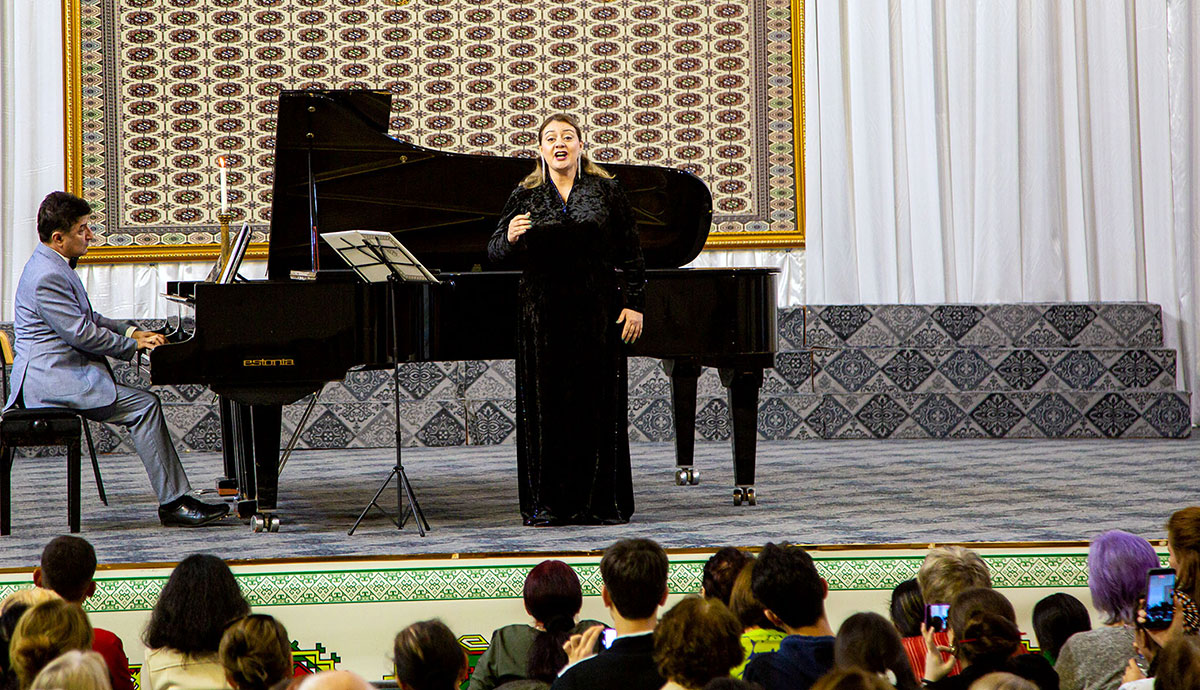 The concert opened with a performance of the Grieg Sonata in C major for two pianos by Elena Arakelyan and Honored Artist of Turkmenistan Vladimir Mkrtumov. A lit candle placed on one of the pianos added a touch of romance to the calm, lyrical melody filled with purity and elegance.