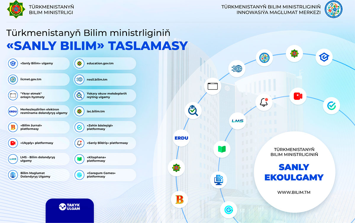 The project, implemented within the framework of the Concept for the Development of the Digital Education System in Turkmenistan, aims to increase the accessibility of educational services through information and communication technologies. The implementation of the Sanly Bilim platform is an important step towards developing the country’s intellectual potential and preparing the youth for the challenges of the digital era.