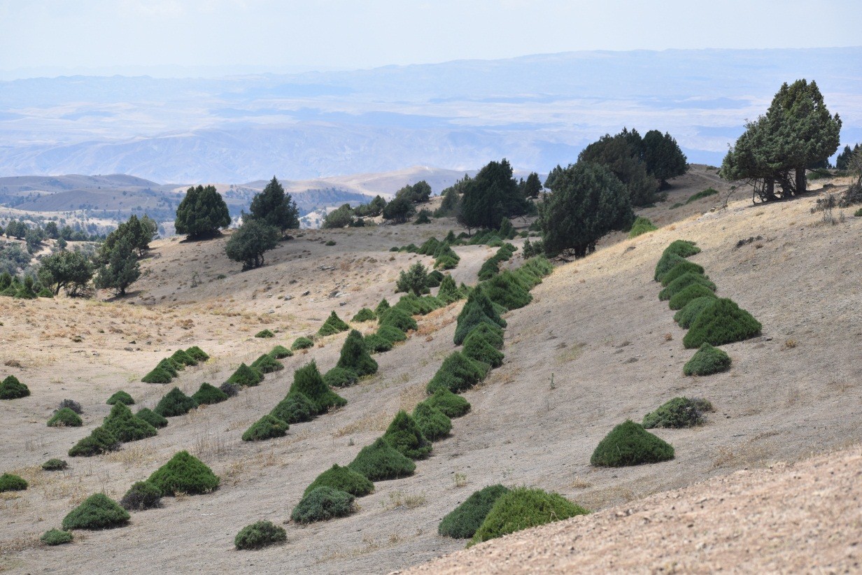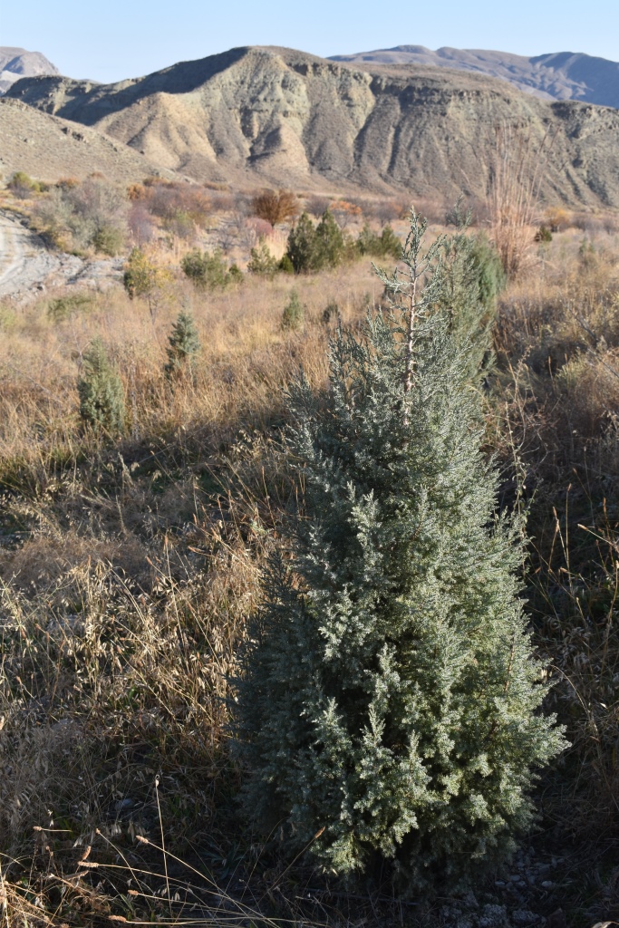 Juniper grows extremely slowly, forming dense wood saturated with resinous compounds, making it resistant to insect pests and plant disease pathogens. Its needles emit phytoncides and aromatic volatile essential compounds. The above-ground part of the plant is recognized as phytomaterial for use in calming baths, applying compresses on joints, and making infusions and aromatic oils. The healing properties of Turkmen juniper are attributed to its essential oils, which contain many active substances including alcohols, terpenes, and acids. In the past, it was also used in well construction, where the inside was lined with wood tiles. This prevented water from spoiling and made the well last many years thanks to the antibacterial properties of the wood. The tree’s branches are an excellent antiseptic and air freshener for homes: the needles retain their aroma for a long time and suppress microflora.