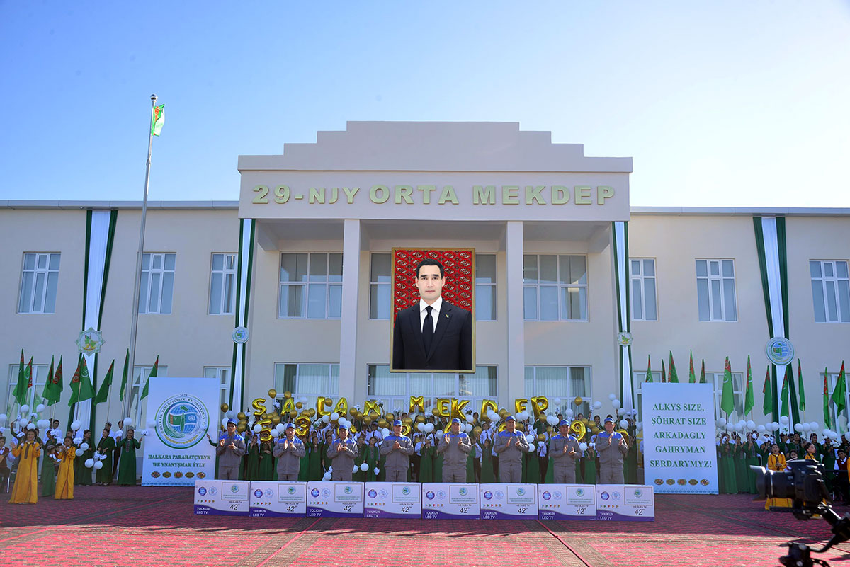 On the day marking the beginning of the new academic year and the celebration of the Day of Knowledge and Student Youth, a solemn opening ceremony was held in the village of Begaryk of Hojeili gengeshlik, Charjev etrap of Lebap velayat for a new two-story general secondary school building with 400 student places.