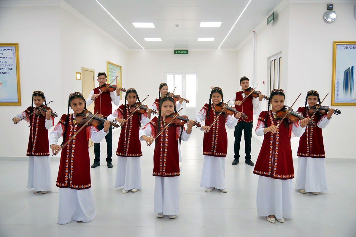 As part of the opening ceremony of the new school building, a comprehensive program was organized, including musical and dance performances by the school's students as well as meaningful speeches from representatives of the older generation, public organizations, and education workers. The participants of the celebration expressed deep gratitude to Hero Arkadag and Arkadagly Hero Serdar for their comprehensive support of the education system, creating favorable conditions for acquiring knowledge and nurturing the younger generation in accordance with international standards, and for shaping physically strong citizens loyal to their homeland and beloved people.