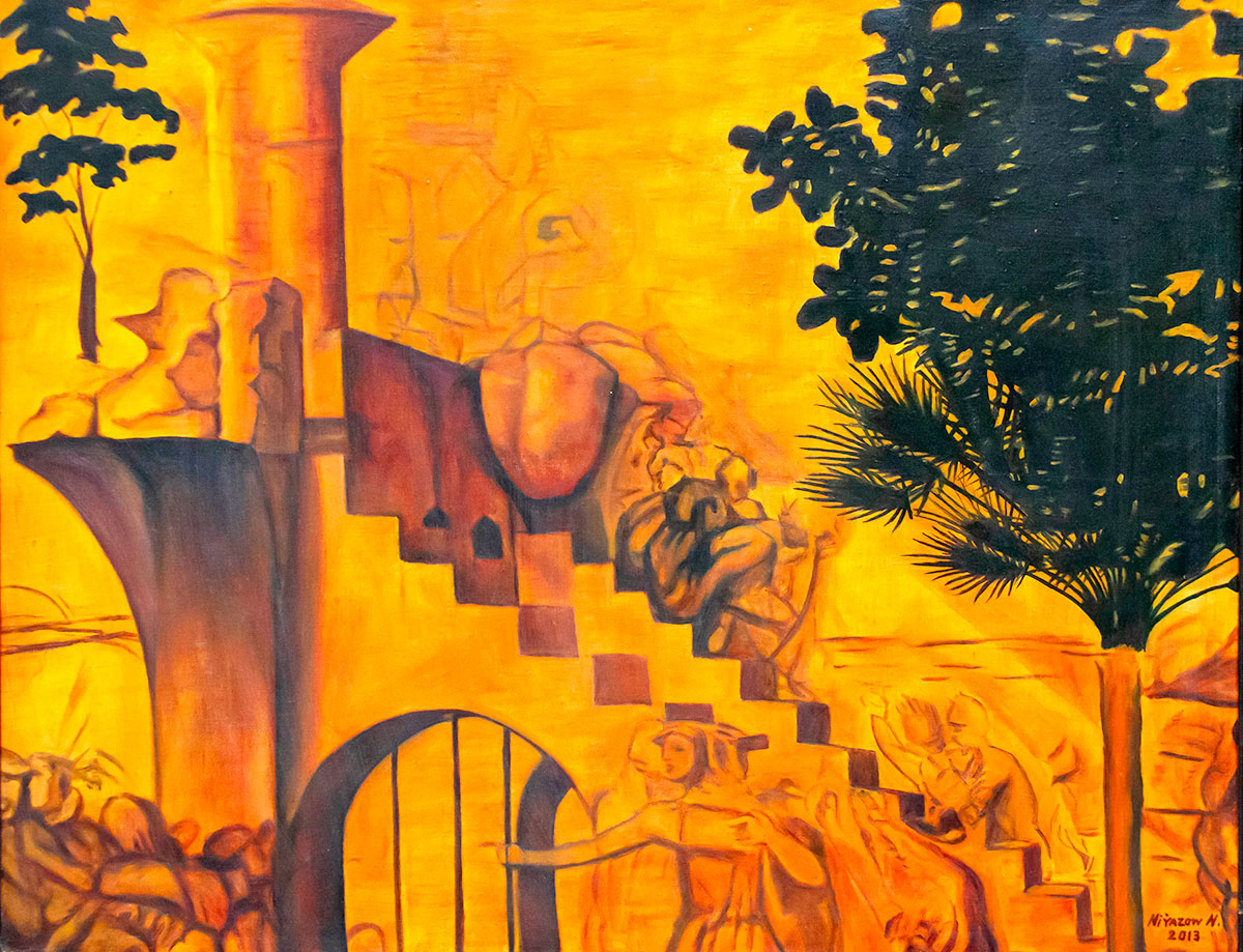Nuriddin Nyyazov was born in Kerki, a small town in the southeast of the country. He received his art education at the art school in Dushanbe. Art critics in the media always emphasise the avant-garde of Mary artists. This fact was facilitated by a group of talented artists who were an example for aspiring artists. Nuriddin Nyyazov, who lived in a provincial town, did not have the opportunity to communicate with masters of painting, so his teachers and idols in creativity were Italian artists of the Revival epoch and the Spanish surrealist artist Salvador Dali.