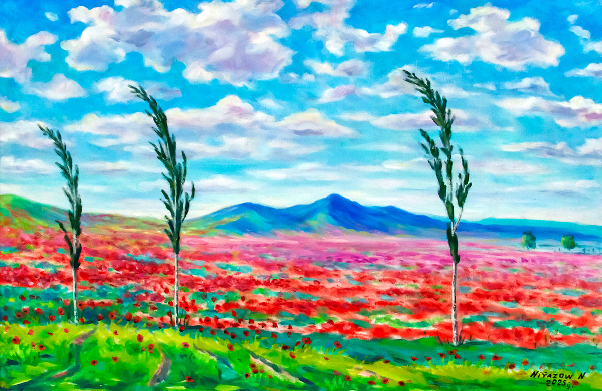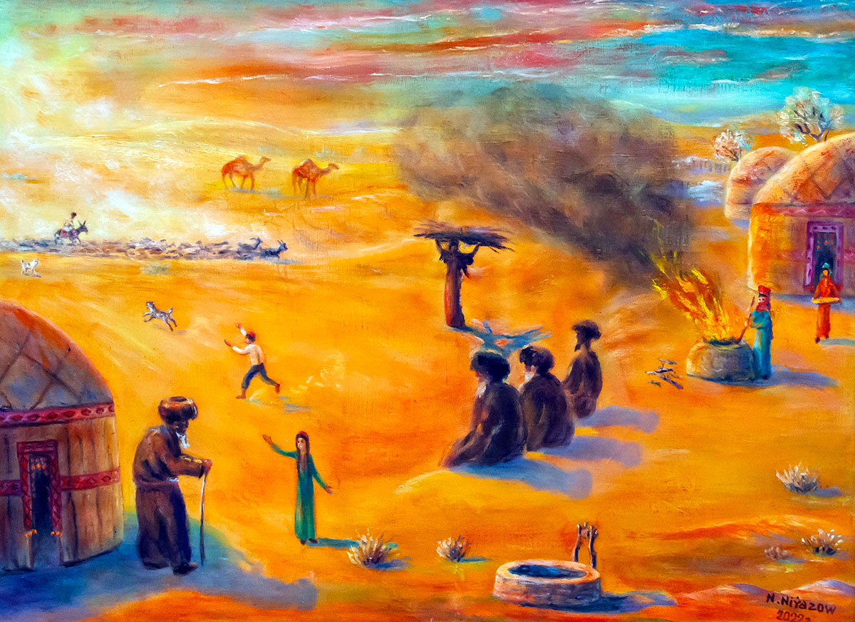 For his anniversary, N. Nyyazov exhibited 70 paintings of different themes and genres. The main theme is the fragility of our planet. Two of his works, «The Call of the Earth» and «The Plea of the Earth», are dedicated to helping people understand that the Earth currently has serious problems and help cope with them. One of the paintings in the cycle is «Global Warming», which brings drought to all life on Earth. Prepare for cataclysms, be on the alert and do not aggravate the already not very rosy situation - these are the tasks facing humanity.