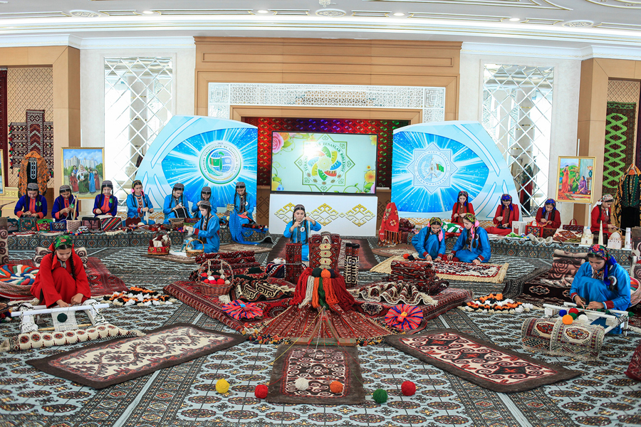 Members of exemplary women's circles from secondary schools in the velayat actively participated. In accordance with the competition's terms, they proudly presented their handicrafts and, through figurative language, songs, and ghazals, spoke of the national values and happy life bestowed upon our people in the era of the Revival of the new epoch of the powerful state.