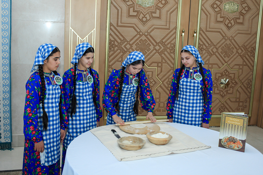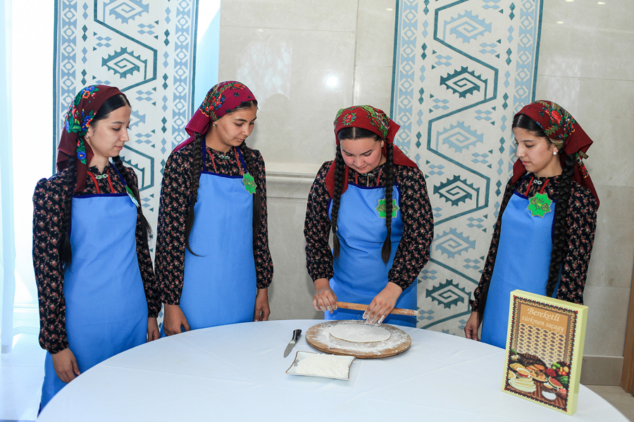 During the competition, they also demonstrated their skills in various handicrafts, carpet weaving, and decorating sachaks. Skilled representatives of the younger generation and young talents also delivered engaging presentations on the meaning and methods of cooking dishes, based on the book «Bereketli türkmen saçagy» («Turkmen Destarhan»). The presentation of the merits of national dishes through expressions, proverbs, and ghazals left an unforgettable impression on the participants.