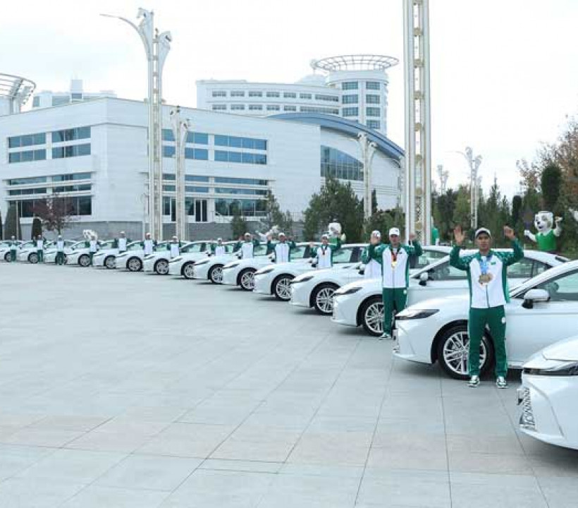 The President of Turkmenistan according to the signed Decree, to each of the coaches, who trained the sportsmen who have won gold medals at international competitions handed keys to the car mark «Toyota Camry HEV 2.5L» of white colour of the year 2025.