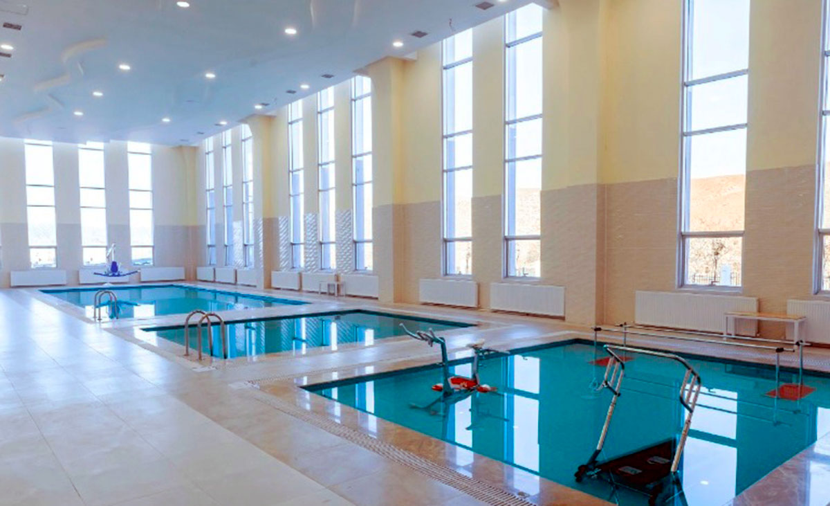 The balneotherapy and mud therapy departments are equipped with separate treatment rooms for men and women, offering procedures using seawater, therapeutic muds, air flows, and light therapy. The SPA department features swimming pools and massage rooms designed for rehabilitation and health strengthening.