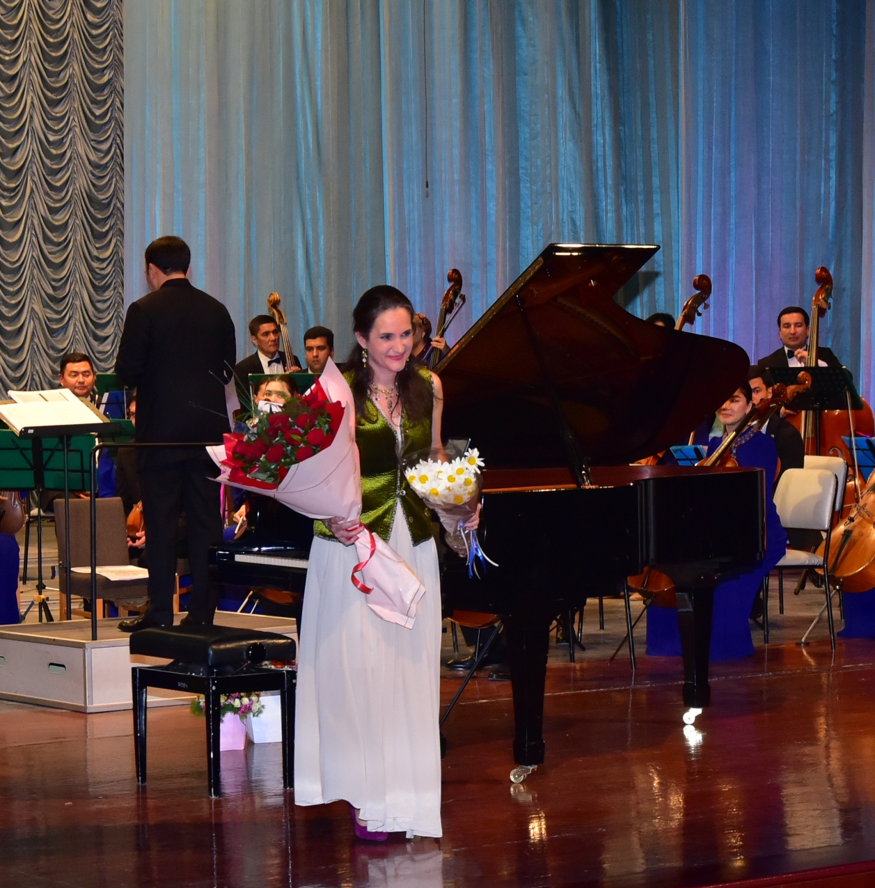 The Magtymguly National Music and Drama Theatre hosted a concert by French pianist Christine Fonlupt, accompanied by the State Symphony Orchestra under the direction of Honored Artist of Turkmenistan Resul Gylyjov.