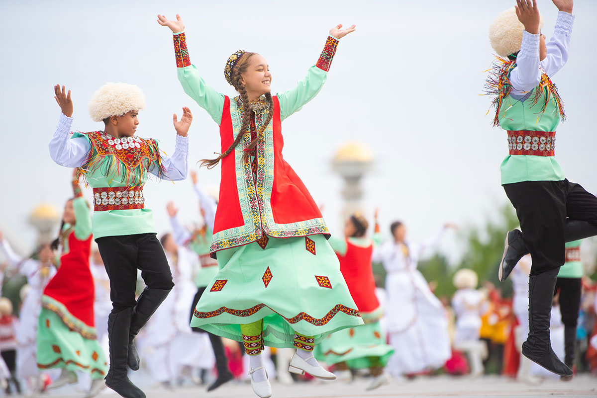In commemoration of International Children’s Day, celebrated on June 1, the United Nations Children’s Fund (UNICEF) Office in Turkmenistan, in partnership with the country’s Ministry of Culture, Ministry of Education, the Ombudsman’s Office, and the State Committee for Television, Radio Broadcasting and Cinematography, united 300 children in the traditional Turkmen dance kushtdepdi in front of the “Älem” Cultural and Entertainment Center in Ashgabat.