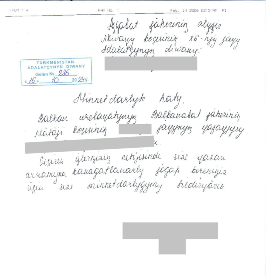 To the Ombudsman of Turkmenistan