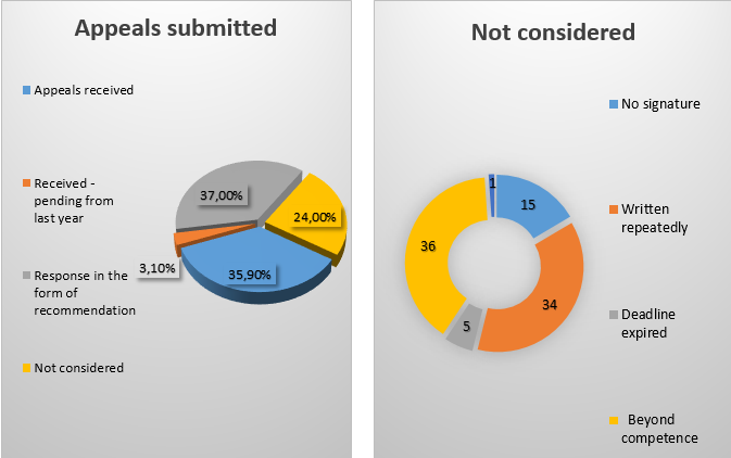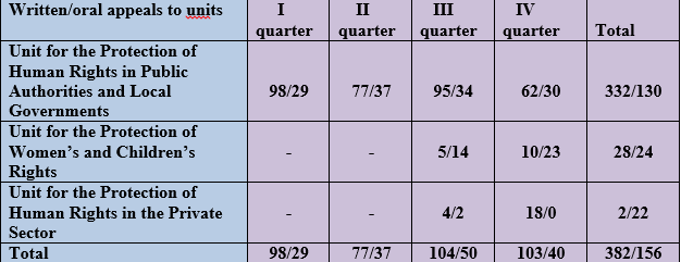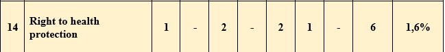 In 2024, the Office of the Ombudsman received 10 appeals related to the right to health protection, of which 6 were written appeals, 4 were oral appeals, of which 1 written appeal was satisfied. They are described in detail in Chapter IV of this Report.