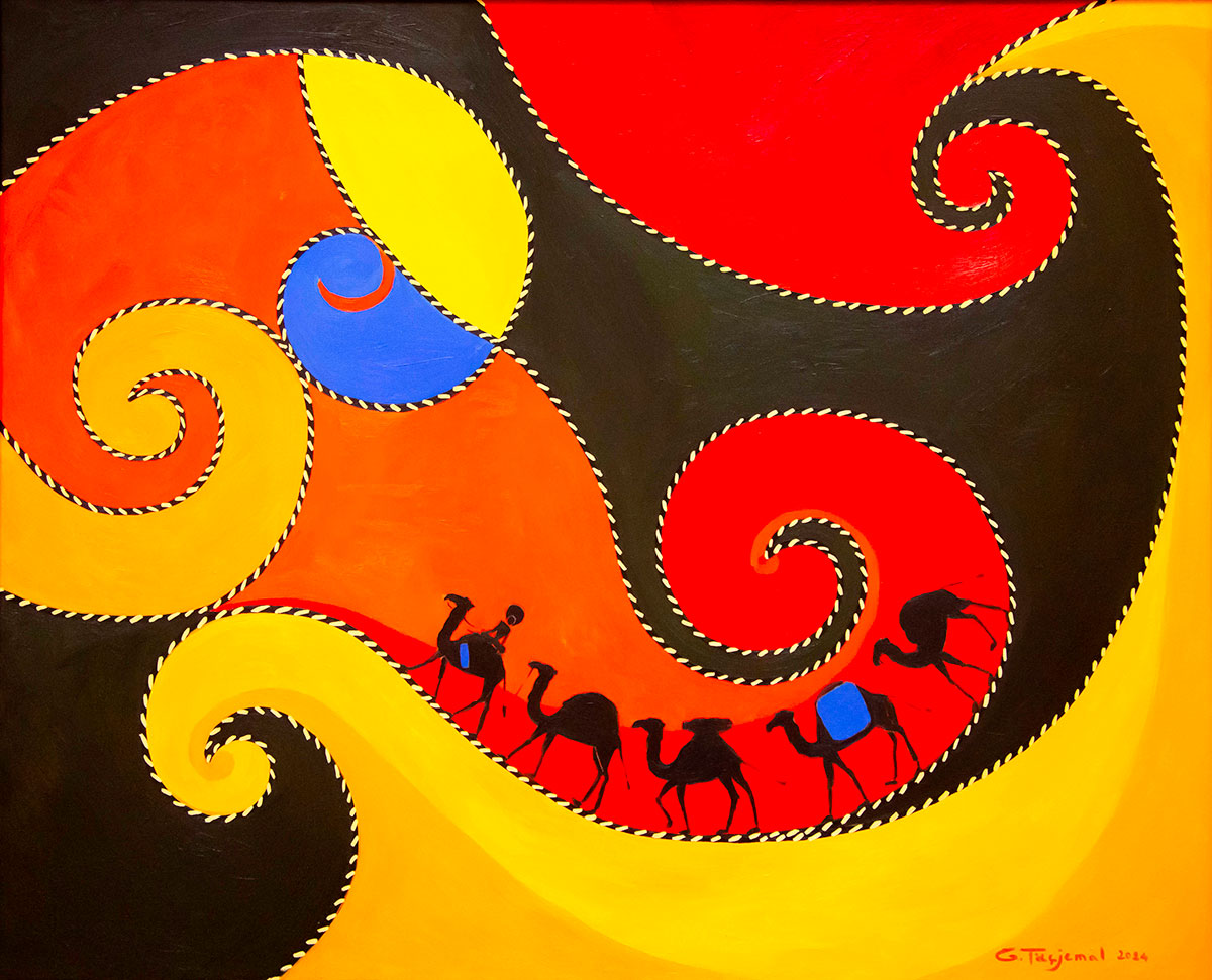 Эта выставка стала познавательна для любителей живописи. К примеру, оказывается народный художник Туркменистана Коссекмурат Нурмурадов – тоже ученик Аннадурды Алмаммедова. Ведущий авангардист страны, известный как Коссек, получил признательность публики с первых же шагов своего творчества. На его почерк оказал влияние стиль восточной миниатюры, причем талантливому художнику прекрасно удается, используя этот стиль, передавать сюжеты из современной жизни.