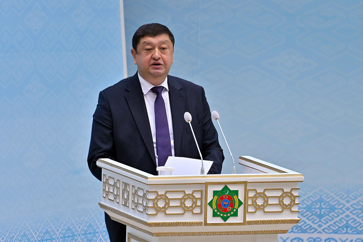 Затем слово было предоставлено управляющему делами Аппарата Халк Маслахаты Р.Базарову, который зачитал соответствующие документы главы Туркменистана.