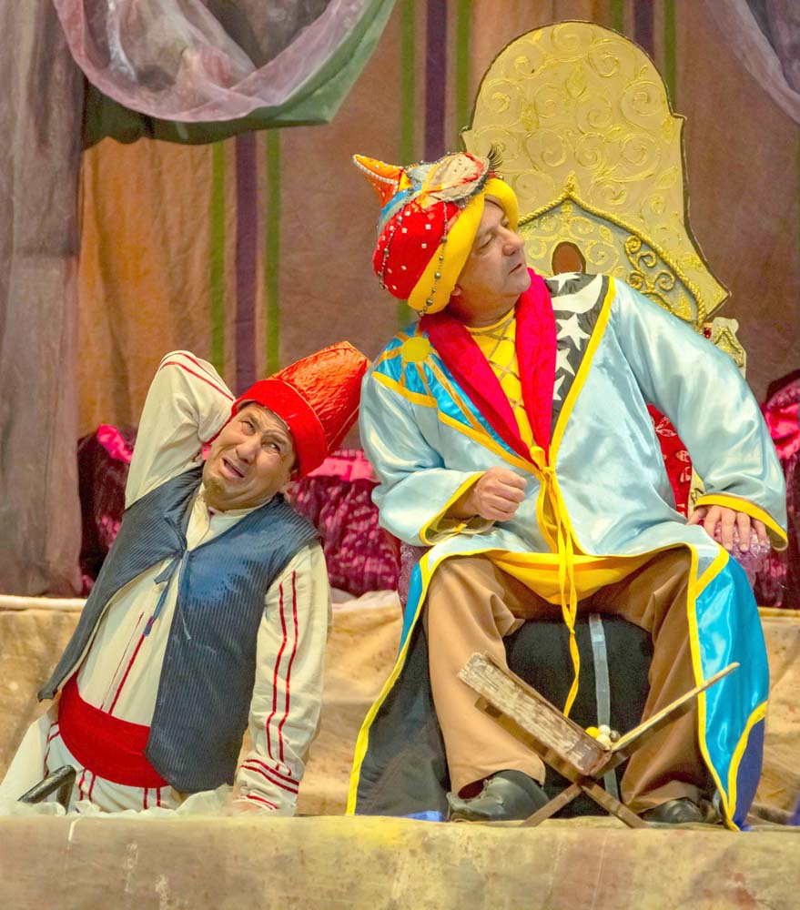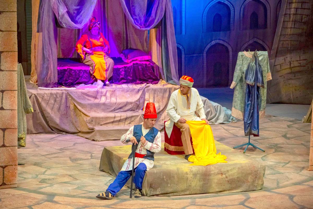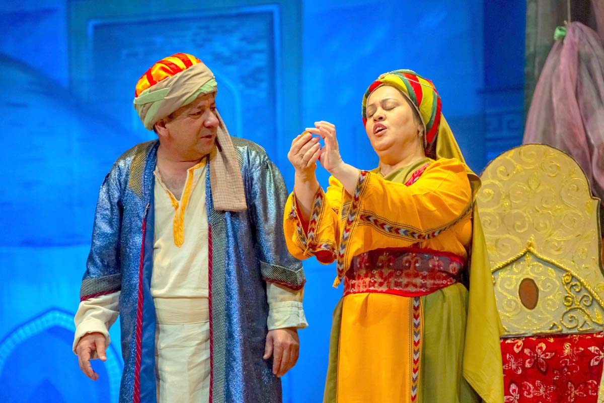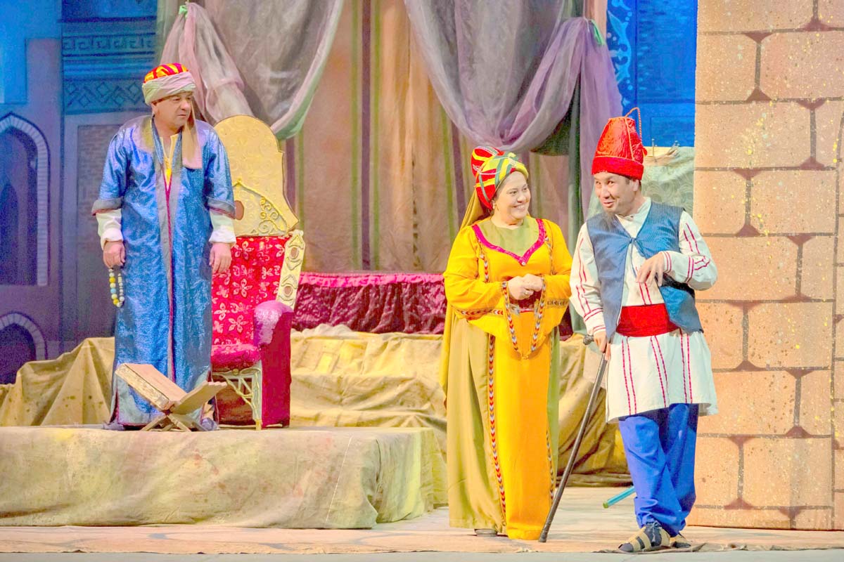 Сюжет комедии, созданной Джорой Худайбердиевым по мотивам сказок «Тысячи и одной ночи», строится вокруг истории властной женщины и её нерадивого супруга.