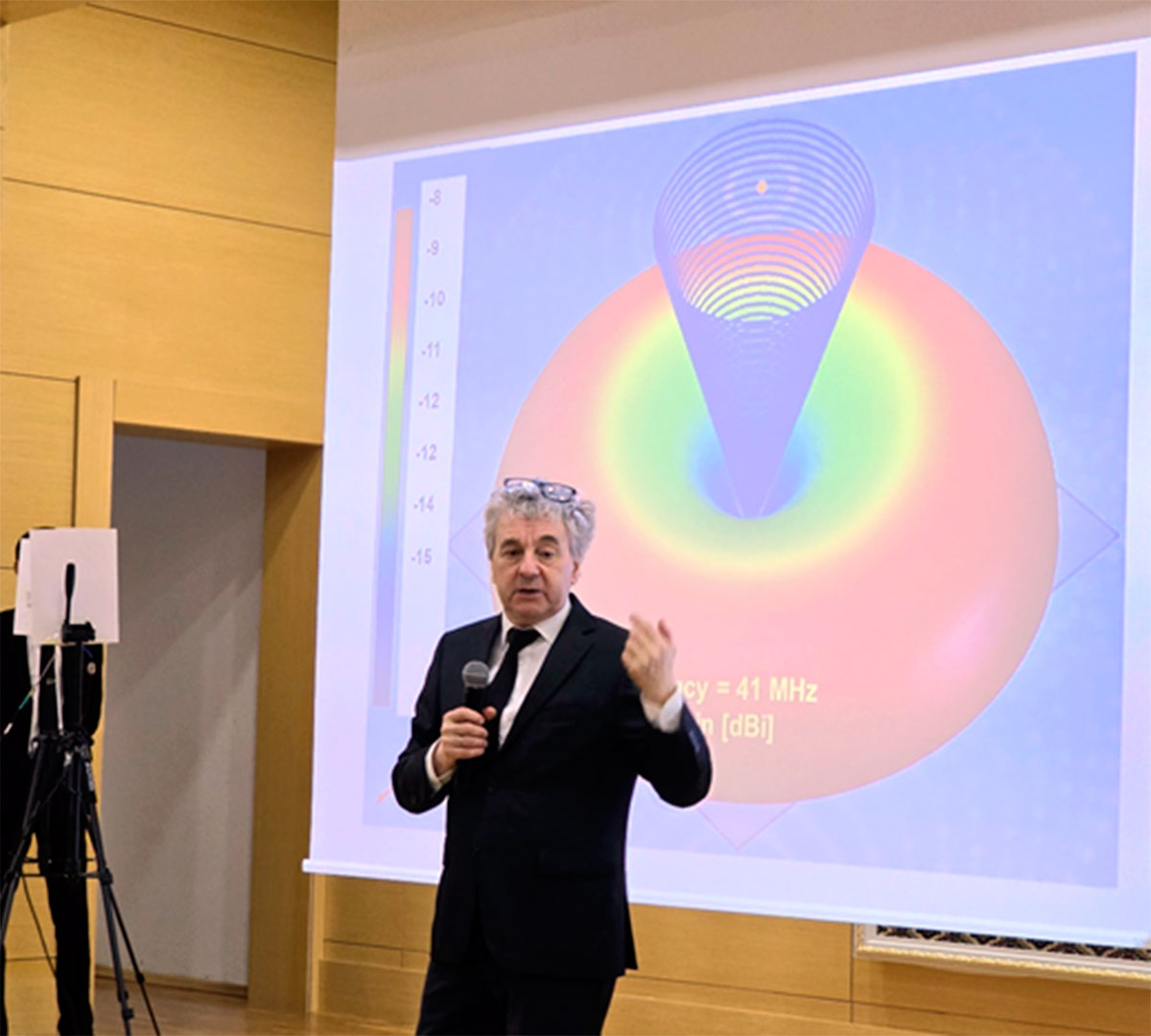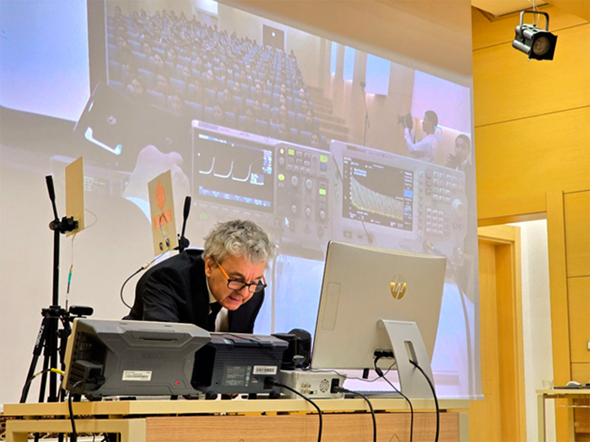 В ходе содержательного занятия профессор университета Граца, приводя наглядные примеры, подробно рассказал об особенностях измерения электрических сигналов и их преобразования, измерения мощности радиосигнала в реальном времени, поляризации и диаграмме направленности.
