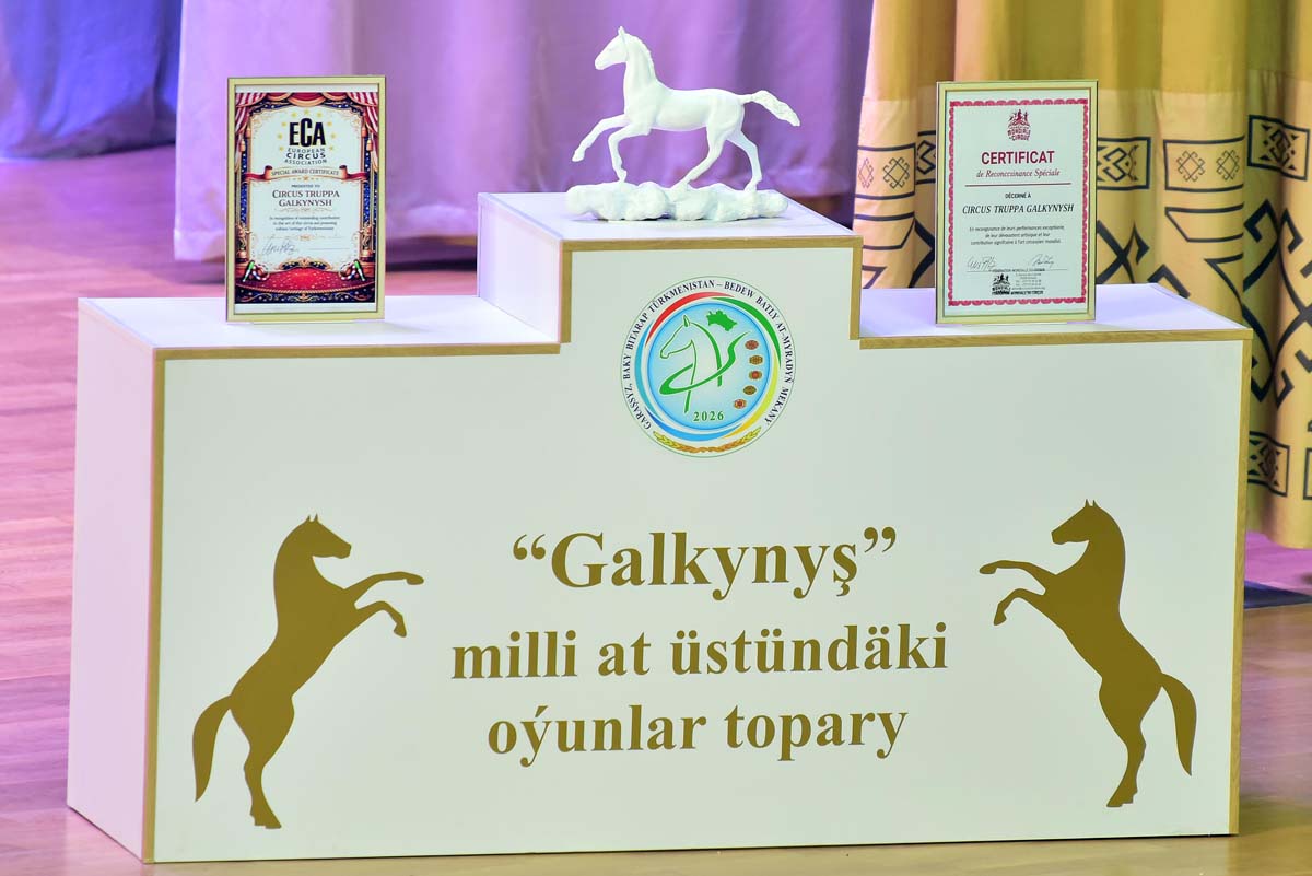 Ярким свидетельством тому служит вручение в начале года Группе национальных конных игр «Galkynyş» международных сертификатов Всемирной федерации цирка и Европейской цирковой ассоциации за большой вклад в цирковое искусство на международном фестивале в Монте-Карло (Княжество Монако).