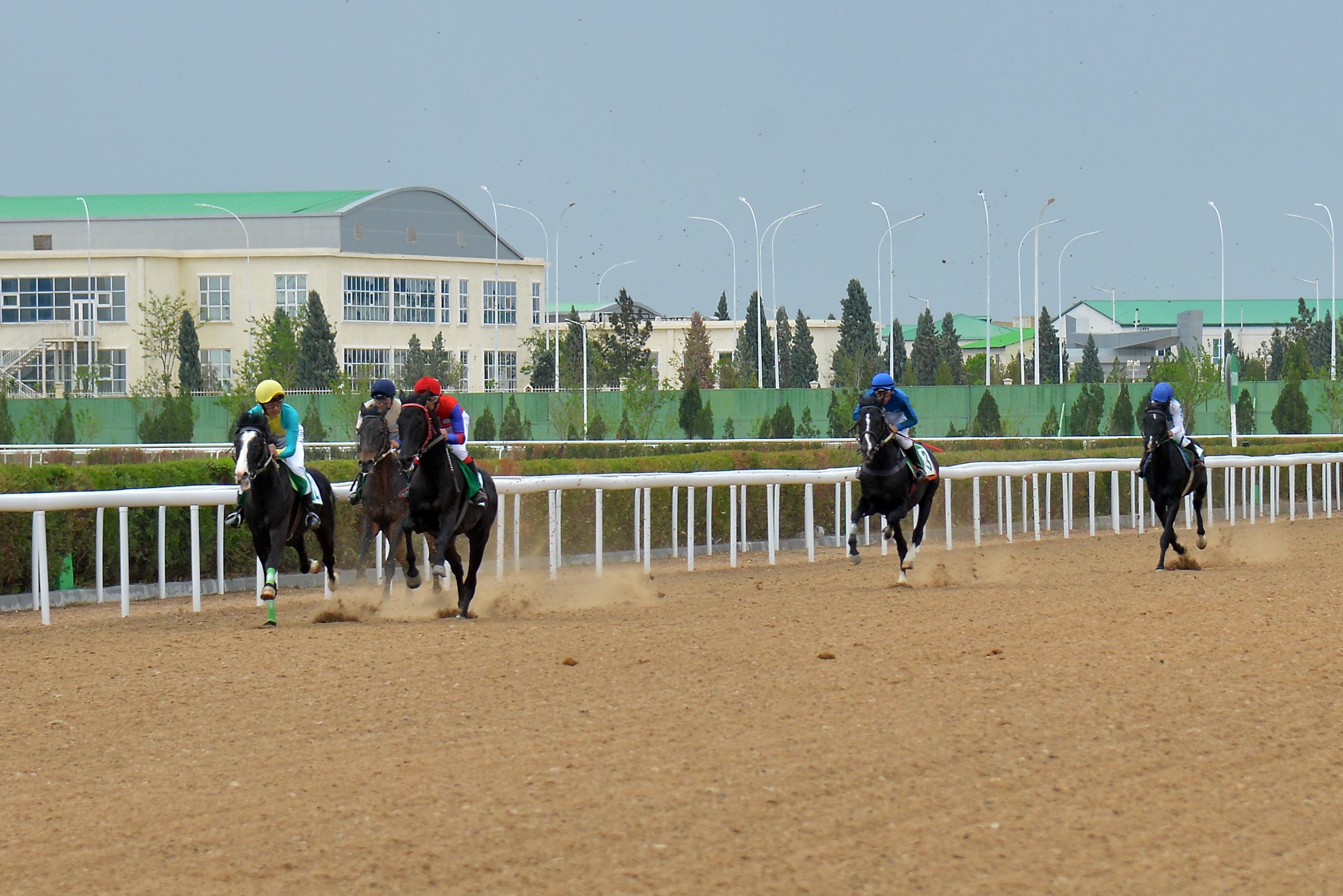 По завершении культурной программы внимание зрителей переключилось на беговые дорожки, где в первом заезде на дистанции 1200 метров среди лошадей в возрасте четырёх лет и старше первенствовал гнедой конь Галмаз под управлением жокея Мухиддина Кулыева, показавший результат 25,7 секунды.