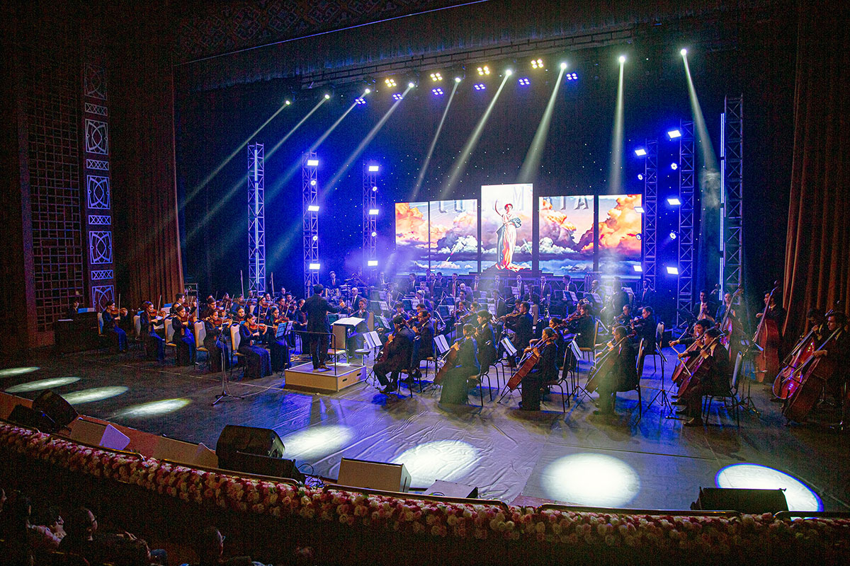 «Киносимфония в Ашхабаде» – так назывался концерт, прошедший с успехом на сцене Дворца Мукамов Государственного культурного центра Туркменистана. Его исполнители – музыканты Государственного симфонического оркестра под управлением заслуженного артиста Туркменистана Расула Клычева. Слушателей приветствовала ведущая концертов симфонического оркестра Сельби Йомудова. Она предложила всем собравшимся в зале совершить музыкальное путешествие в мечту, любовь, мужество и отвагу, запечатленных на кинолентах, ставших хитами ни одного поколения киноманов.