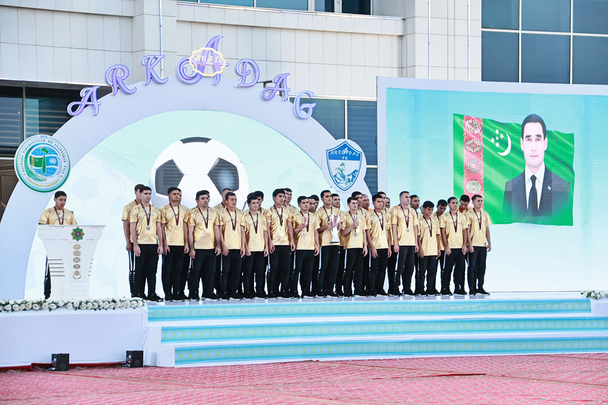 Благодаря усилиям Национального Лидера туркменского народа и Президента Туркменистана, истинного покровителя туркменского спорта, в беломраморном городе Аркадаг созданы все возможности для достижения побед на крупных соревнованиях, сказал руководитель команды. С большой гордостью отмечалось, что за короткое время со дня создания команды, носящей название «Arkadag», каждый спортсмен оправдал высокое доверие Героя-Аркадага и Аркадаглы Героя Сердара, продемонстрировав мастерство владения мячом на зелёном поле, победил на международных соревнованиях и высоко поднял Государственный флаг.