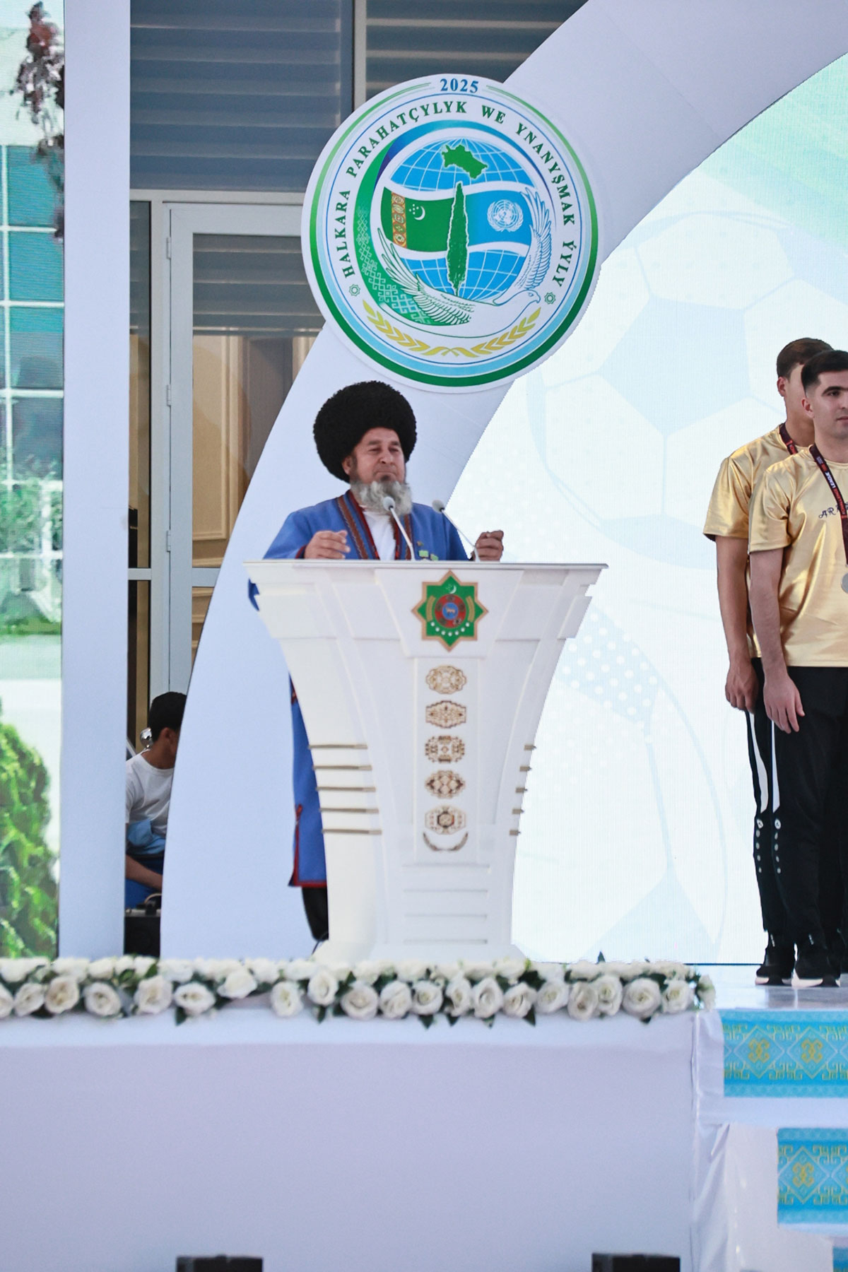 Руководитель футбольного клуба «Arkadag» А.Аманов отметил, что в Международный год мира и доверия его команде удалось стать победителем международного турнира и завоевать Кубок — символ мира. В основе этой престижной, высокой победы лежат учения, личные примеры и великая преданность Героя-Аркадага, Аркадаглы Героя Сердара.