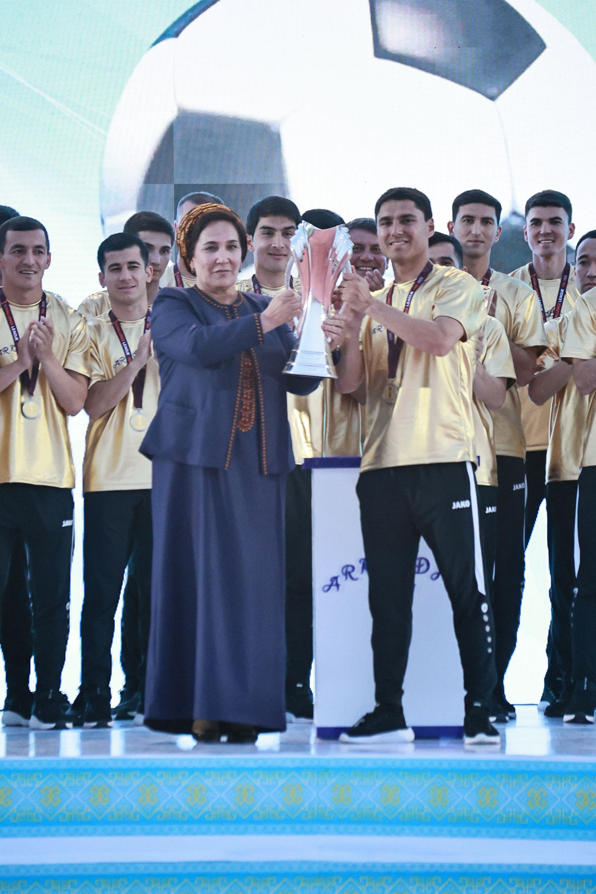В ходе торжественной церемонии, сопровождаемой музыкальными выступлениями, руководитель футбольного клуба «Arkadag» А.Аманов передал хякимлику города Аркадаг Кубок в ознаменование победы футболистов нового города в престижном международном турнире.