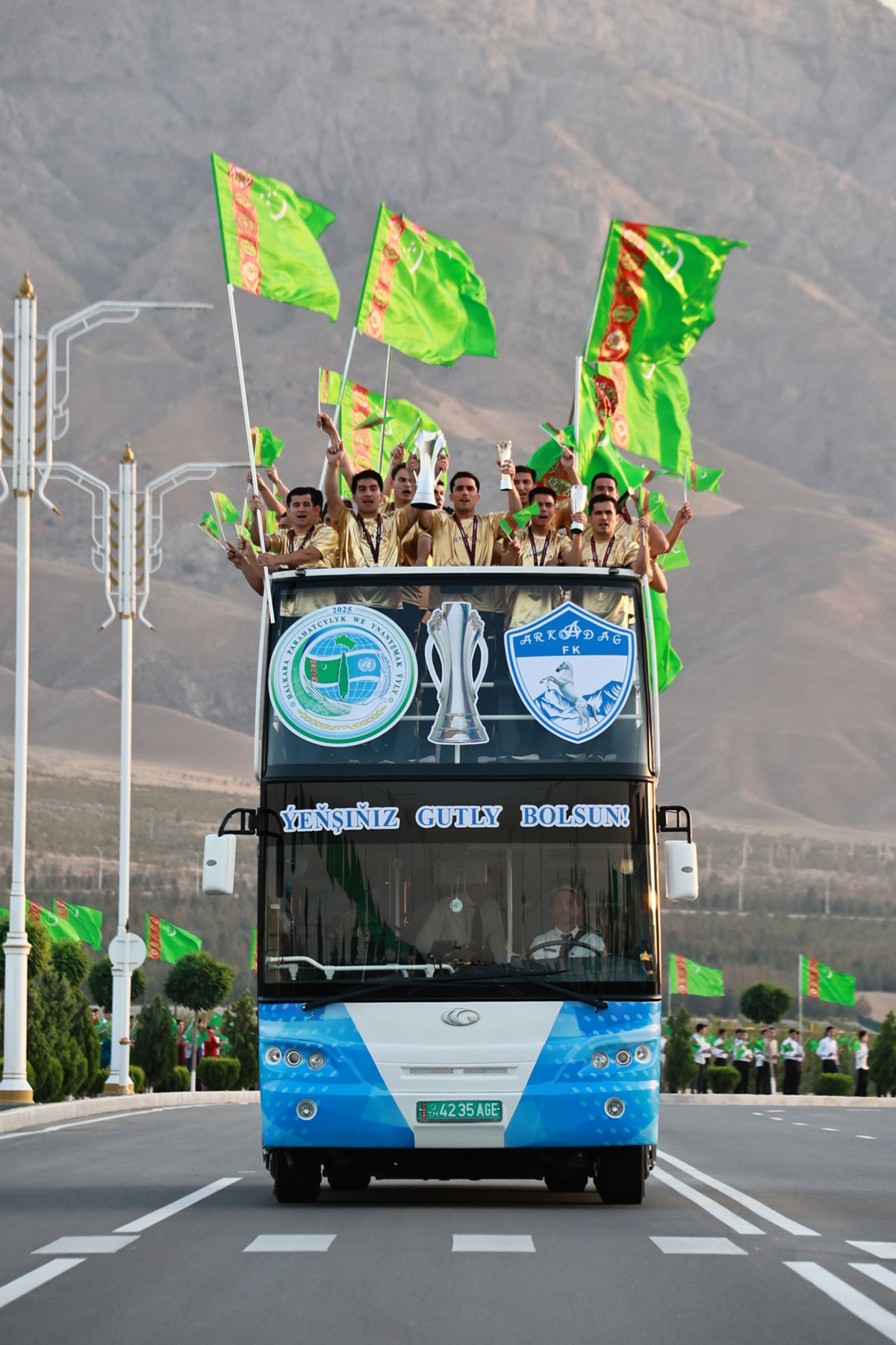 Затем игроки футбольной команды «Arkadag» направились по проспектам Акхан, Аба Аннаев и Кяризек к многофункциональному стадиону нового города, рассчитанному на 10000 мест. Футболистов, одержавших блестящую победу, с радостью и большим воодушевлением встречали многочисленные жители города Аркадаг и поклонники футбола.