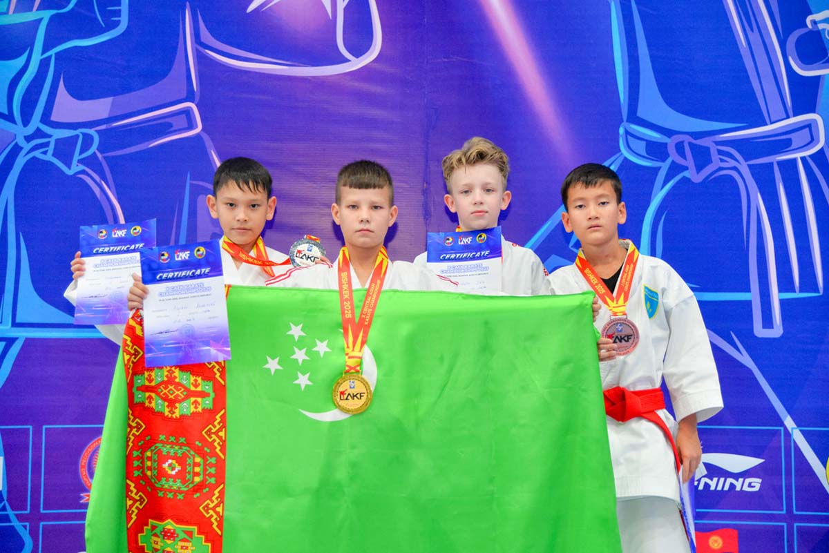 Ahal welaýatynyň Gökdepe etrabyndaky 1-nji ýöriteleşdirilen orta mekdebiň okuwçysy Öwezmyrat Sapadurdyýew (14 ýaşa çenli oglanlaryň arasynda, tälimçisi S.Setdarow) we Aşgabat şäherindäki 55-nji orta mekdebiň 11-nji synp okuwçysy Dawut Saryýew (17 ýaşa çenli ýetginjekleriň arasynda, tälimçi B.Ýalkabow) kümüş medal gazandylar. Olaryň ikinjisi, WKF-iň düzgünlerine laýyklykda, uly ýaşly türgenleriň arasynda (18 ýaşdan uly) bäsleşige goýberildi we ýene bürünç medal hem gazandy.
