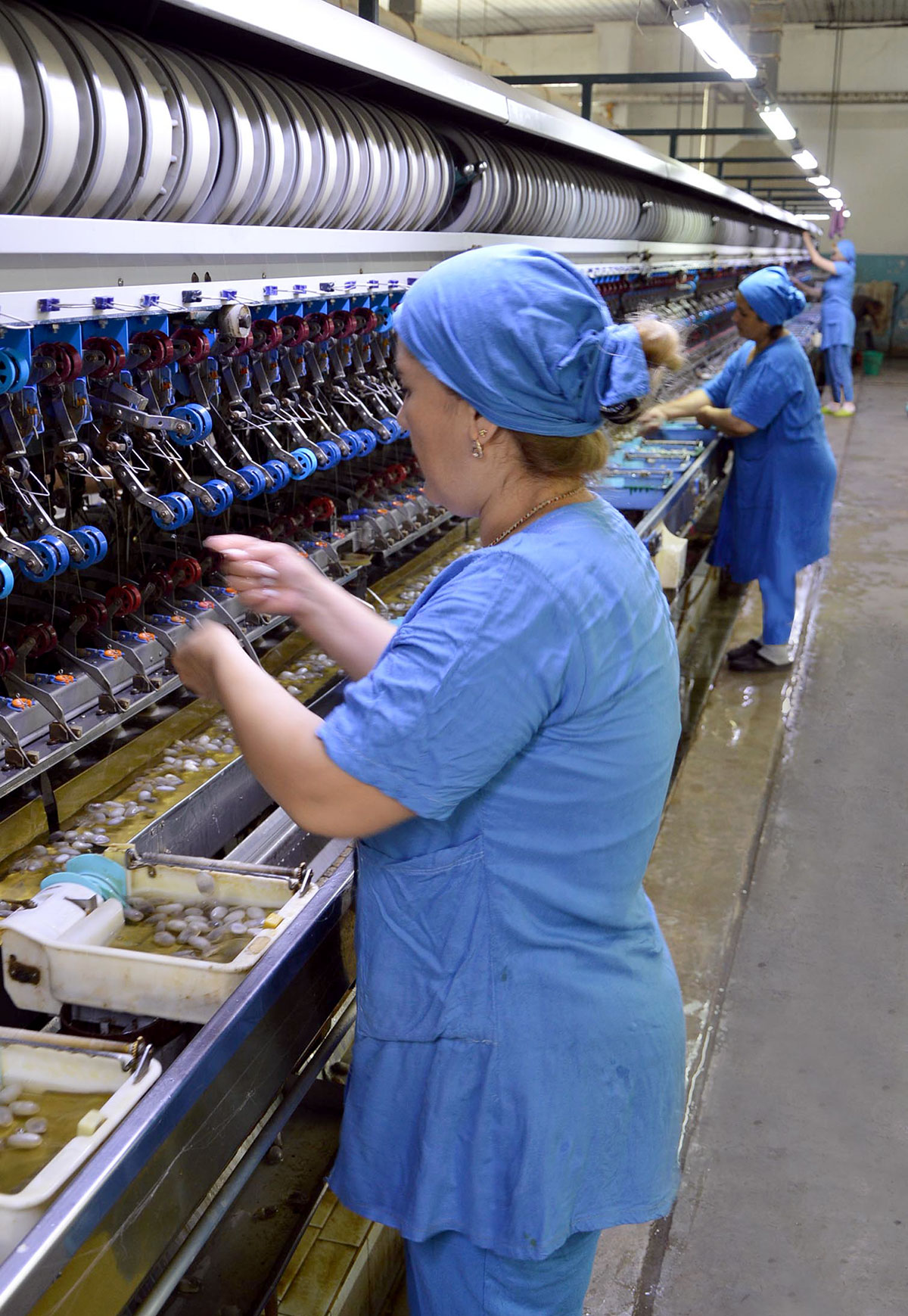Häzirki döwürde bu pudakda hereket edýän iň iri kärhanalaryň biri hem 1931-nji ýylda işe girizilen «Türkmenpagta» döwlet konserniniň garamagyndaky Türkmenabadyň ýüpek önümçilik birleşigidir. 90 ýyl töweregi wagtdan bäri işläp gelýän baý iş tejribesi bolan bu kärhananyň Garaşsyzlyk ýyllarynda durkunyň täzelenmegi, piläni işlemek üçin häzirki zaman tehnologiýalarynyň önümçilige ornaşdyrylmagy, şeýle hem önüm öndürmegiň täze usullarynyň we görnüşleriniň gözlenilmegi birleşigiň geriminiň giňelmegini we önümçiligiň netijeliliginiň ýokarlanmagyny üpjün edýär. Kärhana boýunça Halkara parahatçylyk we ynanyşmak ýylynyň alty aýynda gazanylan ýokary netijeler hem işleriň guramaçylykly ýola goýlandygyna şaýatlyk edýär. Degişli döwürde önümçilik birleşigi boýunça 33 ýarym tonna golaý çig ýüpek taýýarlanylypdyr. Bu bolsa önüm öndürmek boýunça meýilnamanyň 119,3 göterim amal edilendigini aňladýar.
