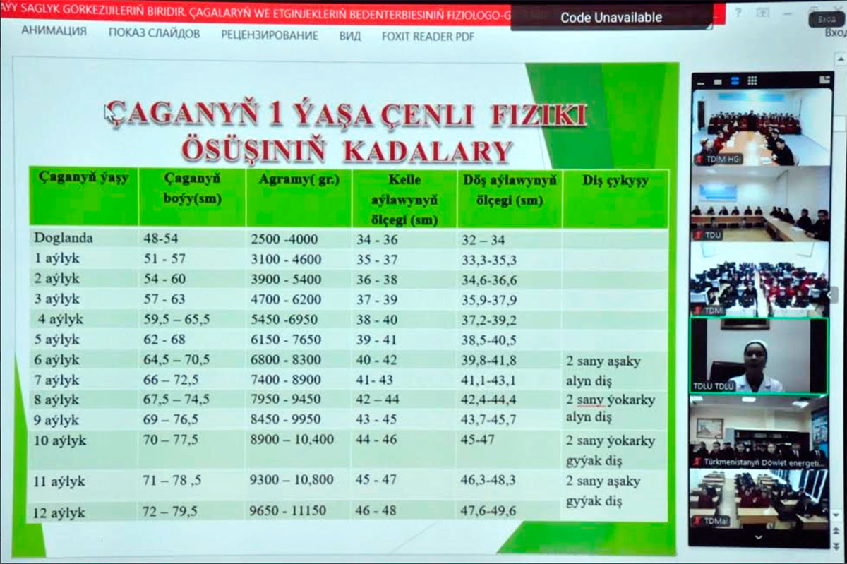 10 декабря в Туркменском государственном медицинском университете имени Мырата Гаррыева состоялся онлайн-семинар на тему «Методы оценки и тестирования физического развития детей и подростков», в котором приняли участие преподаватели и студенты высших учебных заведений страны.