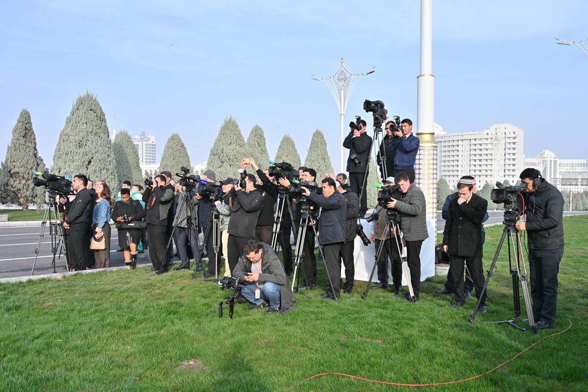 Сегодня в туркменской столице с участием иностранных делегаций, прибывших в нашу страну для участия в Международном форуме мира и доверия, состоялась церемония открытия монумента 30-летия Нейтралитета, а также церемония поднятия флагов на площади перед монументом.