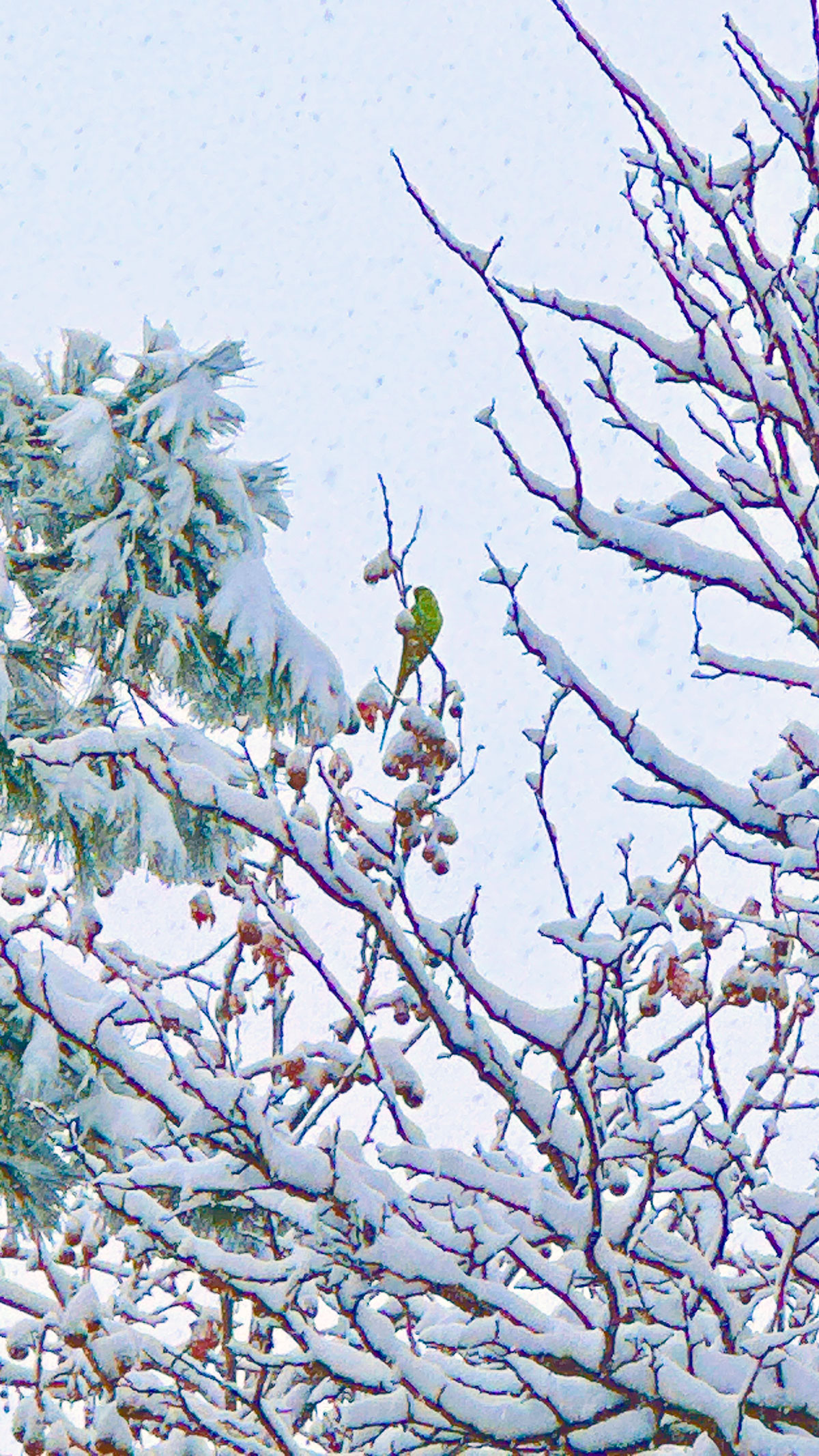 Если большинство птиц предпочли спрятаться от холодов, то индийские кольчатые попугаи (ожереловые попугаи Крамера) стали главными героями дня. Ярко-зеленые птицы кружат над парками, то ли радуясь внезапным переменам, то ли возмущаясь капризам природы. Кажется невероятным, что еще пару дней назад в городе стояло почти весеннее тепло, а сегодня – настоящая, полноправная зима.