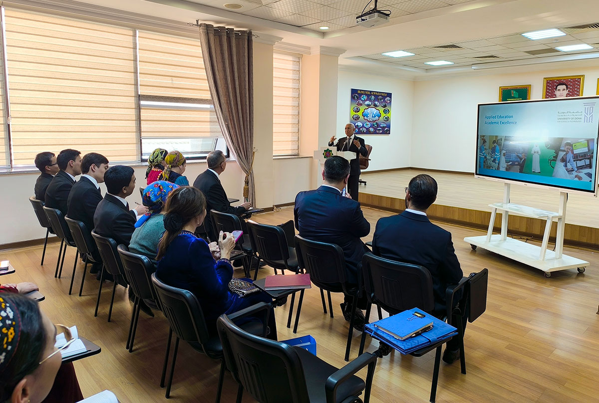 В продолжение двустороннего мероприятия ректор Дохинского университета науки и технологий провел общую лекцию для преподавателей и студентов Института телекоммуникаций и информатики Туркменистана. Руководитель катарского вуза подробно рассказал об академической и научной работе, проводимой в университете, после чего пообщался с профессорами, преподавателями и студентами туркменского вуза и ответил на интересующие их вопросы.