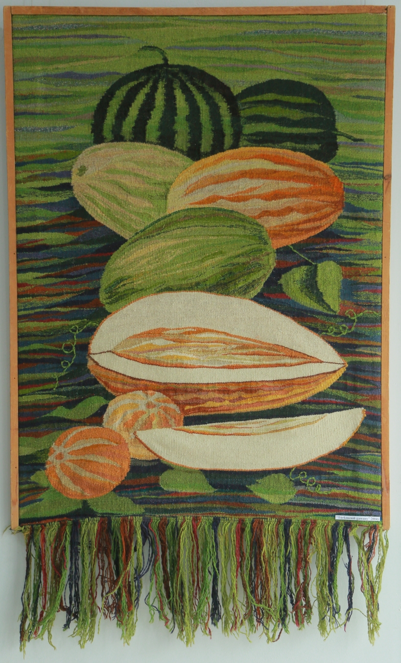 Выставка получила название – «Красота, созданная руками мастера». Гостей, пришедших в выставочный центр поздравить юбиляра, первым встречал «вкусный» гобелен.