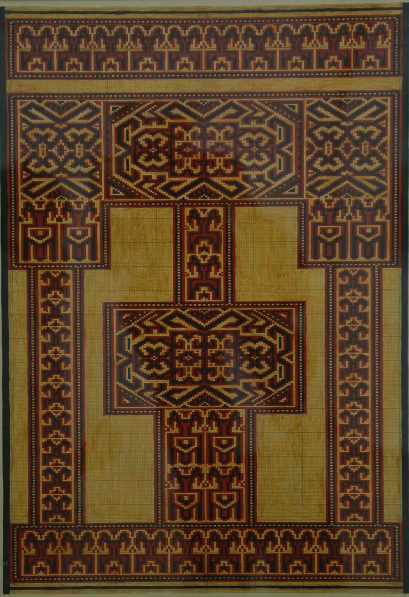 Из ковровых изделий особое внимание зрителей привлек ковер с изображением в центре стилизованного сооружения, похожего на мечеть, а также на кеджебе – свадебную повозку или же на ювелирное украшение. Каждому зрителю дано право по своему выбору определить предназначение этого сооружения.