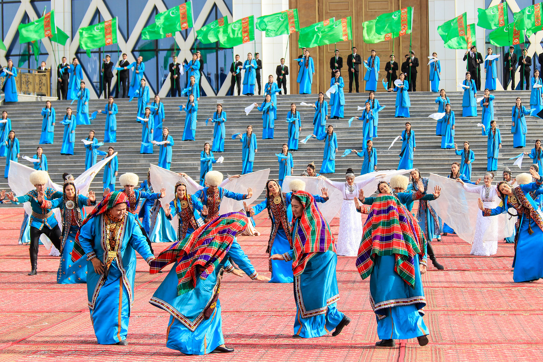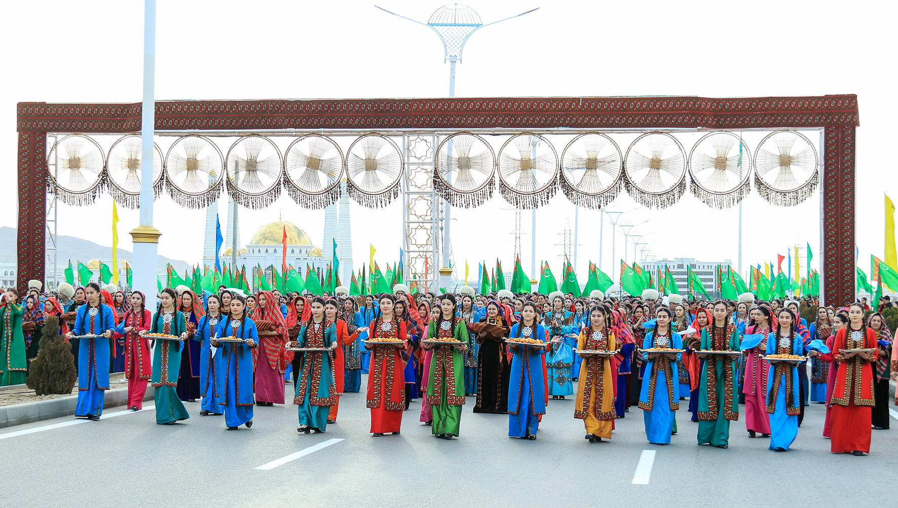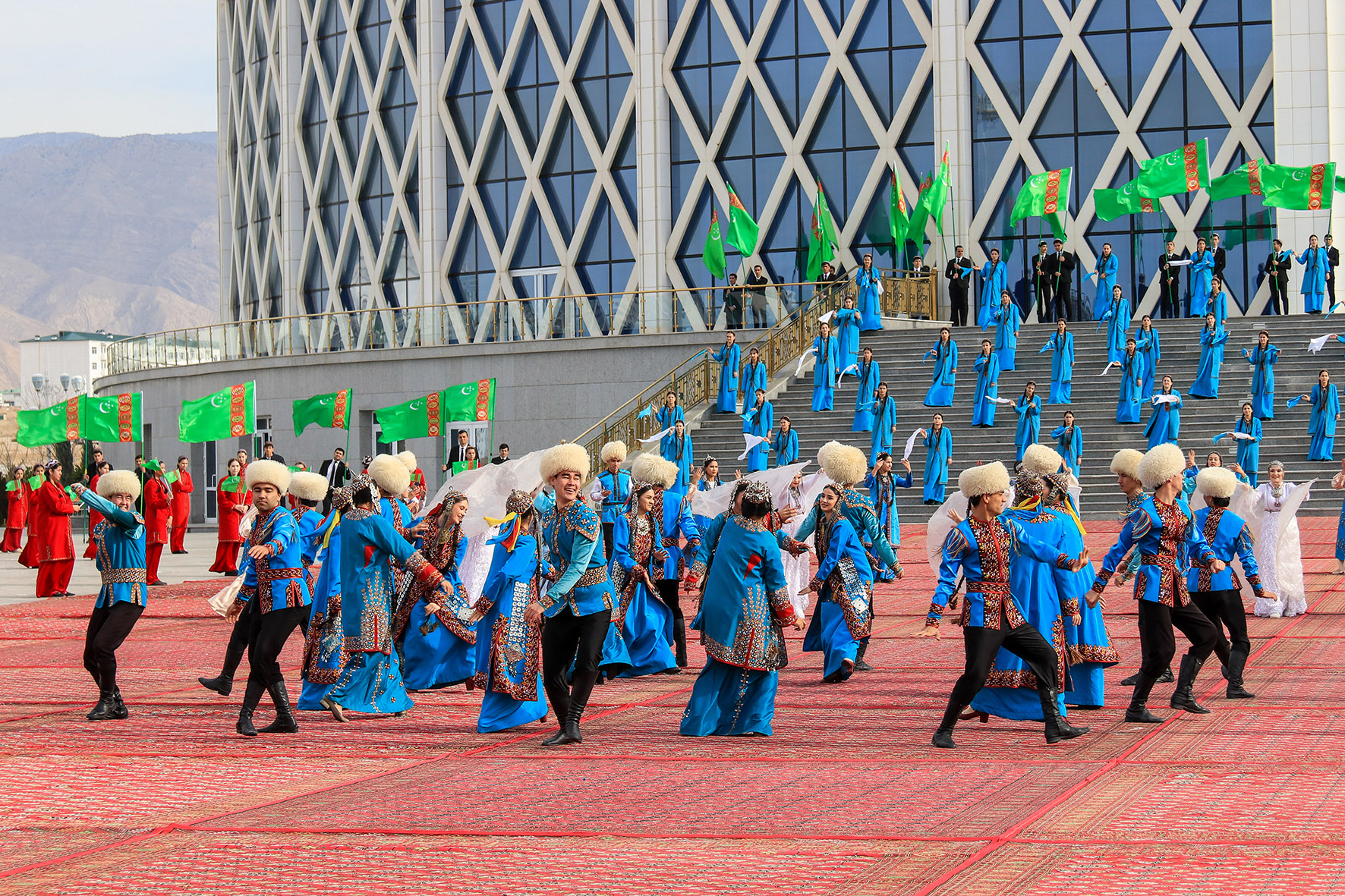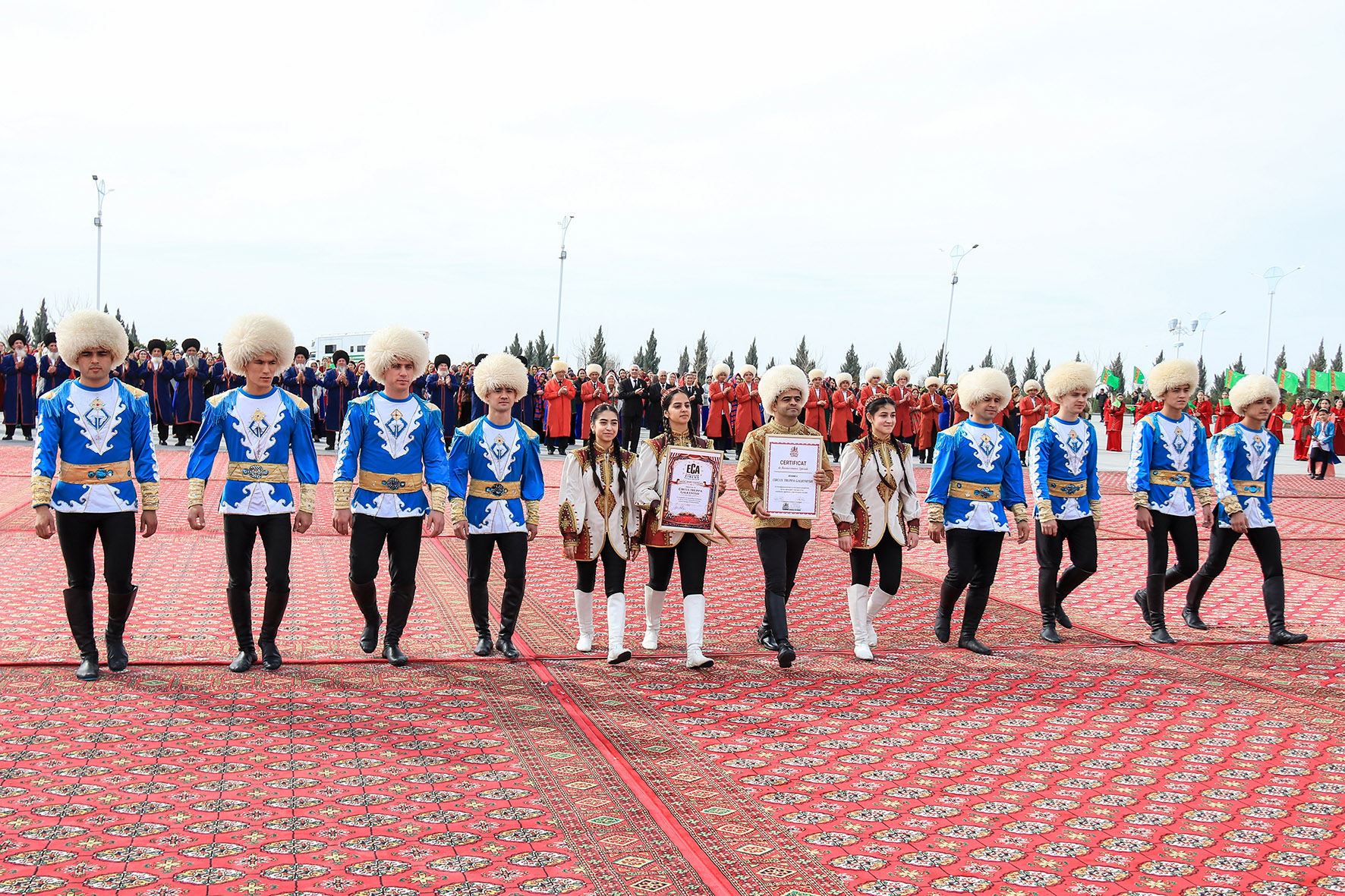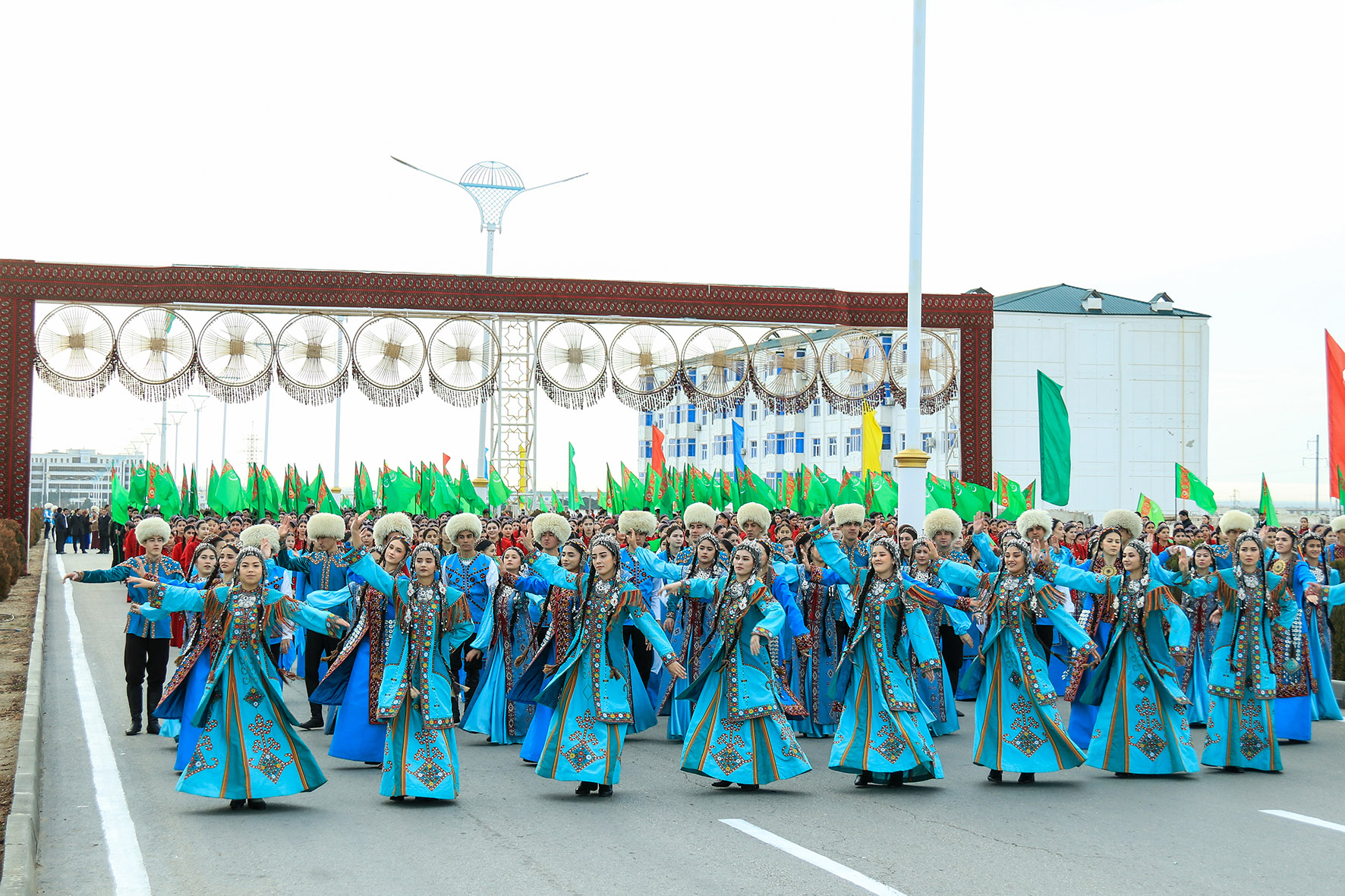 Праздничное убранство у здания «Türkmeniň ak öýi», дополненное белыми юртами и окрестным пейзажем, придало торжеству особый колорит. Объединённый творческий коллектив велаята представил музыкальный номер который завершился исполнением танца «куштдепди».