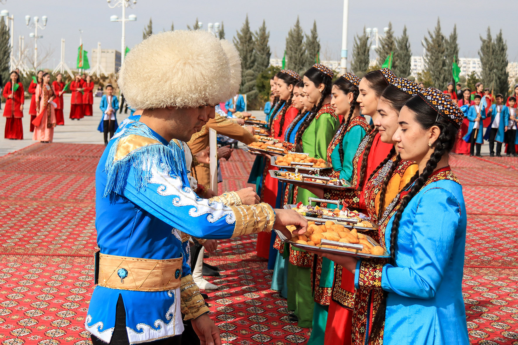 Праздничная атмосфера царила перед Дворцом бракосочетаний «Bagt köşgi». Танцевальные и фольклорные коллективы Балканского велаята представили национальные традиции, характерные для туркменских свадеб. Литературно-музыкальные выступления, организованные на площади перед зданием библиотеки, вызвали искренние эмоции у гостей. Они выразили признательность учащимся Балканской велаятской специальной школы искусств за их яркие выступления.