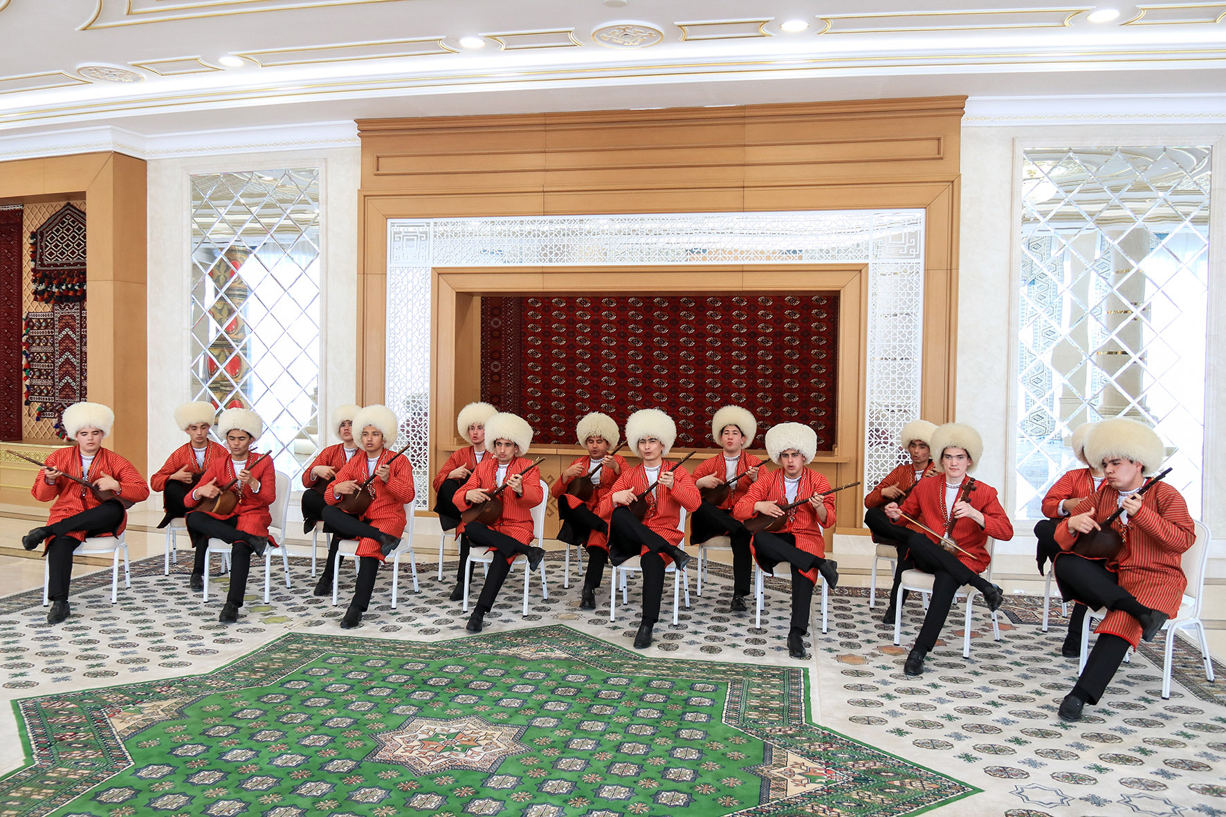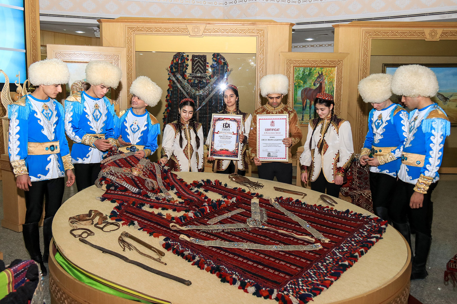 У входа в музей гостей приветствовали юные таланты, вдохновенно декламировавшие стихи, посвящённые нынешней прекрасной эпохе. Вручение группе «Galkynyş» подковы, вырезанной из дерева дагдан, сопровождалось бурными аплодисментами. Гости ознакомились с современной экспозицией изделий декоративно-прикладного искусства, предметами конской упряжи, ковроткачества, ювелирными изделиями, а также музейными ценностями.