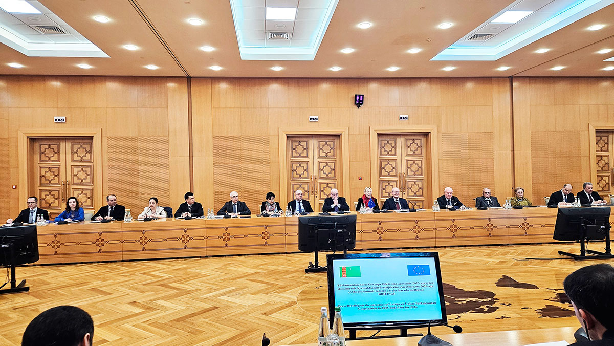 17 февраля в Министерстве иностранных дел Туркменистана состоялся пресс-брифинг, на котором были подведены итоги масштабного сотрудничества с Европейским союзом за прошедший год и намечены ключевые ориентиры на 2026 год.