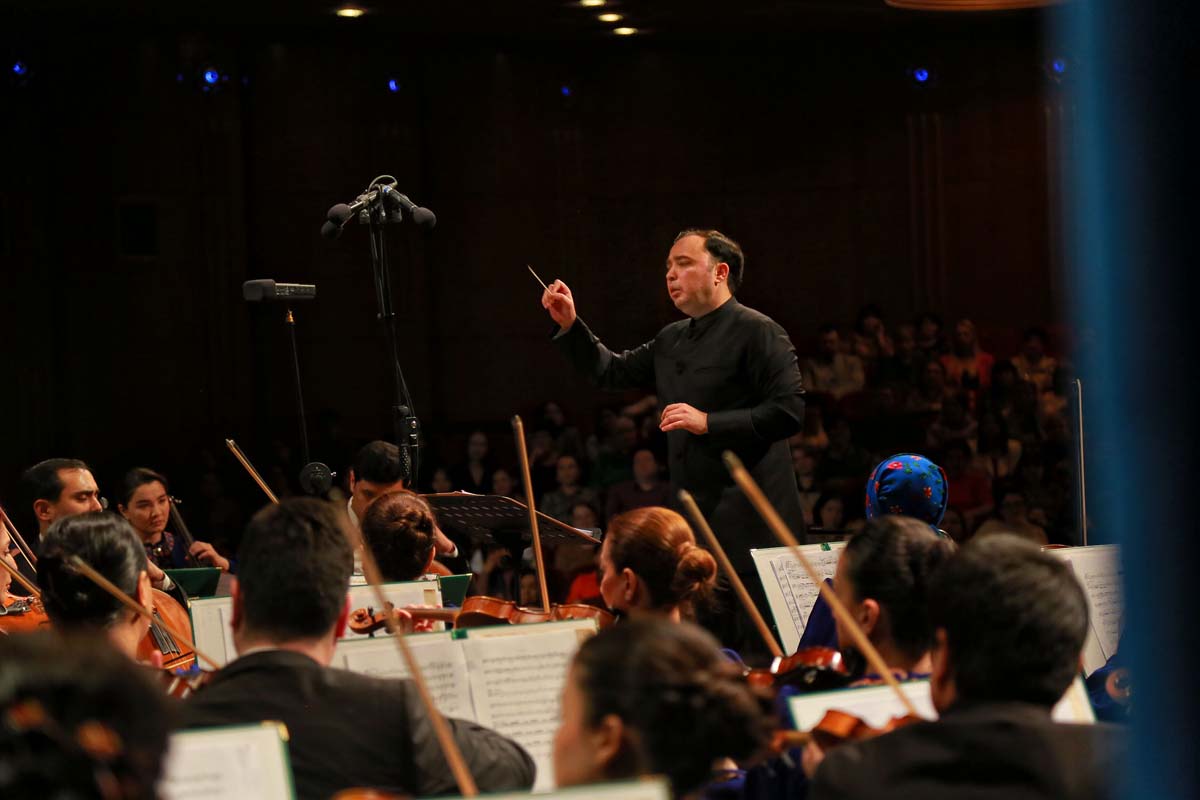 В Национальном музыкально-драматическом театре имени Махтумкули с большим успехом прошёл концерт «Симфонические картины» в исполнении Государственного симфонического оркестра под управлением заслуженного артиста Туркменистана Расула Клычева.