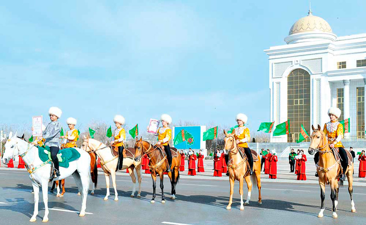 Сегодня, согласно Программе мероприятий в области коневодства и конного спорта, утверждённой Президентом страны в честь девиза 2026 года «Независимый нейтральный Туркменистан – родина целеустремлённых крылатых скакунов», а также по случаю вручения Группе национальных конных игр «Galkynyş» в Монте-Карло (Княжество Монако) международных сертификатов Всемирной федерации цирка и Европейской цирковой ассоциации за большой вклад в цирковое искусство, в городе Дашогуз состоялось масштабное торжество под названием «Toýnak sesiň toý dabara at-myradyň mekanynda». Данное мероприятие, стартовавшее недавно в Балканском велаяте и продолжившееся в Дашогузе, стало очередным этапом праздничного турне прославленного коллектива по велаятам страны.
