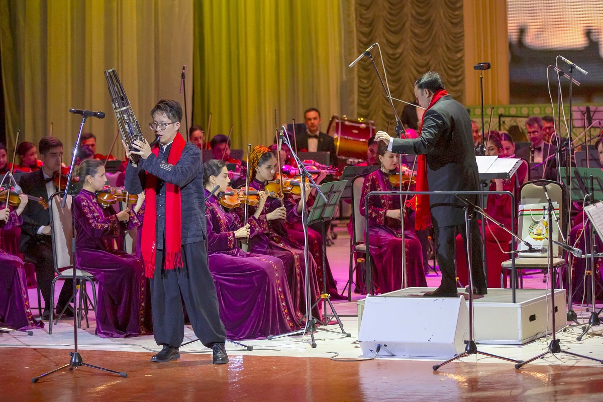 Туркменская сторона ответила не менее вдохновенно. В исполнении Государственного симфонического оркестра Туркменистана прозвучали бессмертные произведения Нуры Халмамедова. Кульминацией вечера стали совместные номера, где китайские солисты выступали под аккомпанемент туркменского оркестра, демонстрируя абсолютную гармонию двух культур.