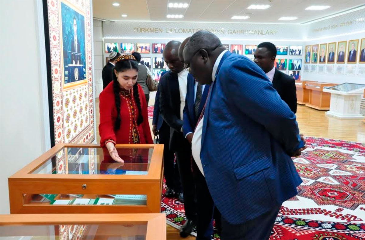 Далее для гостей была организована ознакомительная экскурсия по институту, в ходе которой они посетили Музей истории туркменской дипломатии.