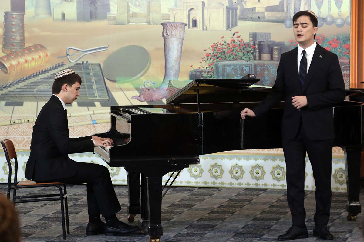 К этой встрече студенты подготовили небольшой концерт в исполнении вокалиста – пятикурсника Сахи Аллаярова, и пианиста – первокурсника Джемшита Акыева. Прозвучали песни на стихи Курбанназара Эзизова и музыку Данатара Хыдырова, в том числе «Uzak ýaýladaky enäniň hüwdüsi» и «Özgelere dunledem». Кстати, один из участников встречи – композитор Данатар Хыдыров, который является большим поклонником поэзии туркменского поэта.